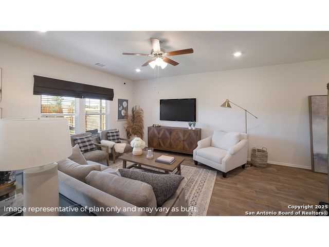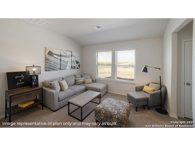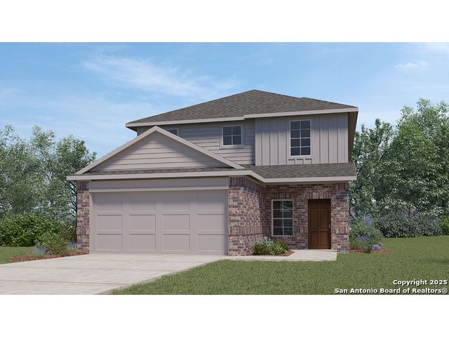 Step inside The Nicole plan, a two-story home featured in Riverstone at Westpointe in San Antonio, TX. Featuring 2 classic front exteriors, 4 bedrooms, 3 full baths and a 2-car garage, this floor plan is sure to turn heads. The Nicole offers 2473 square feet of comfortable living and includes a full bathroom and bedroom located right off the foyer that is perfect for guests. Continue down the hall to find an open concept plan with the family room opening to a gourmet kitchen and dining room. The kitchen includes quartz counter tops, stainless steel appliances, shaker style cabinetry and a spacious corner pantry. A kitchen island overlooks the living room and includes a deep, single basin sink and a breakfast bar, perfect for fast mornings on the go. The wide, inviting staircase leads to a spacious game room, utility room, main bedroom suite, two secondary bedrooms with carpet flooring and spacious closets and third full bathroom. Your private main bedroom features an attached ensuite bathroom built with plenty of storage space, a walk-in shower and a separate water closet for the toilet. The grand walk-in closet is a stand-out feature of The Nicole floor plan, complete with plenty of windows for natural lighting. Additional features of The Nicole include sheet vinyl flooring in entry, living room, and all wet areas, quartz counter tops in all bathrooms, and full yard landscaping and irrigation. This home includes our HOME IS CONNECTED base package. Using one central hub that talks to all the devices in your home, you can control the lights, thermostat and locks, all from your cellular device.