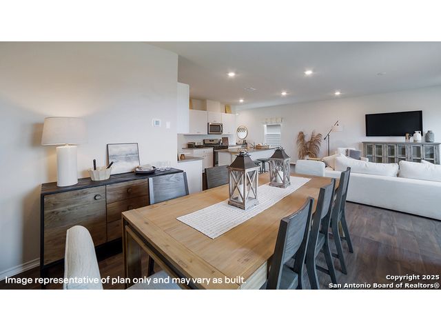 Welcome to The Kate floor plan, a two-story home located in Riverstone at Westpointe in San Antonio, TX. This home features 2 classic front exteriors, 4 bedrooms, 2.5 baths, a spacious 2-car garage and 2223 square feet of living space. An arched, covered patio (per plan) opens to the gourmet kitchen which includes quartz counter tops, stainless steel appliances and shaker style cabinets. The Kate is an open concept floorplan with the kitchen island overlooking a dining nook and living room so you'll never miss a moment. This home is unique in that all bedrooms are located upstairs, along with a loft and utility room. If entertaining downstairs and maintaining a private retreat upstairs is your goal, this floor plan is the one for you. The main bedroom has its own attractive ensuite bathroom that features a walk-in closet and all the space you need to get ready in the morning. You'll love a quartz single vanity sink, shaker style cabinetry, a tiled walk-in shower, and a separate water closet for the toilet. Your secondary bedrooms all have quality carpet flooring, large windows and closets. Whether these rooms become bedrooms, office spaces, or other bonus rooms, functionality is key. Additional features include sheet vinyl flooring in entry, living room, and all wet areas, quartz counter tops in all bathrooms, and full yard landscaping and irrigation. This home includes our HOME IS CONNECTED base package. Using one central hub that talks to all the devices in your home, you can control the lights, thermostat and locks, all from your cellular device.