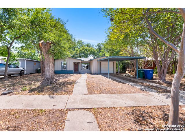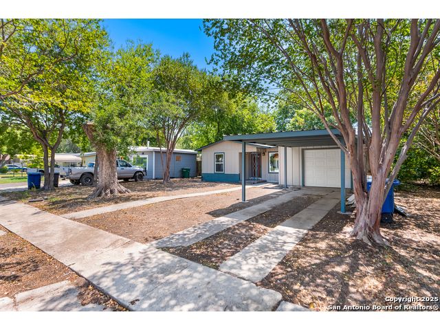 HOME HAS HAD EXTENSIVE UPDATING INCLUDING NEW FLOORING, NEW INTERIOR PAINT, BATHROOM REMODELED, KITCHEN UPDATED, NEW EXTERIOR SIDING AND PAINT, NEW SHINGLES, NEW THERMAL DOUBLE PANE WINDOW AND MORE. HOME IS A 3 BEDROOM BUT FLEX ROOM COULD BE A LARGE 4TH PRIMARY BEDROOM, SECOND LIVING AREA, STUDY WITH ENOUGH ROOM TO ADD A SECOND BATH IF YOU WISH. ONE CAR GARAGE WITH NICE ATTACHED 1 CAR CARPORT. HUGE TREES ADD TO THE CURB APPEAL. ALL THIS HOME NEEDS IS YOU. YOU CAN LOOK AROUND AND YOU WILL NOT FIND A NICE HOME FOR THE MONEY. ALL THIS HOME NEEDS IS YOU. LOCATED MINUTES TO DOWNTOWN, KELLY FIELD, LACKLAND, THE AIRPORT AND MUCH MORE.