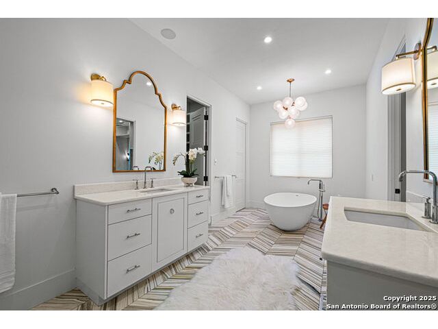 Located in the heart of Terrell Hills, this gorgeous home offers timeless design while featuring tasteful designer finishes. The first floor includes a formal dining, a chic office, a sizeable family room, guest room, a chef's kitchen including a side-by-side Sub-Zero refrigerator/freezer and Wolf appliances, and a marvelous sitting room with a wet bar with built-in custom wine storage. Lastly, the oversized primary suite is on the first floor and includes dual vanities, a soaking tub, a large walk-in shower, and two large walk-in closets. Also on the 1st floor is an additional bedroom and bath. The second story of the home includes three bedrooms, three ensuite bathrooms, and an additional flex space. Two laundry's one upstairs and one downstairs.