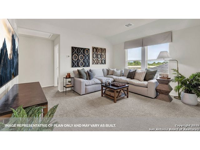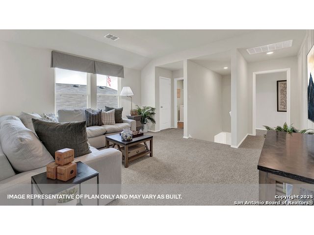 MOVE IN READY! The Nicole is our largest floorplan available at our Bollinger community in Maxwell, Texas. This two-story home offers 4 bedrooms, 3 bathrooms, a gameroom, and 2 car garage all within 2,473 square feet of comfortable living space. Our homes in Bollinger feature our modern farmhouse exterior and the Nicole floorplan is available in 2 exterior options. Entering the home from the covered front porch, cross the foyer and find a short hallway to the downstairs secondary bedroom and a full bathroom. Passing the staircase, continue through the foyer to the heart of the home, the living area. The family room, dining area, and kitchen are open, making entertaining and everyday living a shareable experience for family and friends. The kitchen features an island with undermount sink, granite countertops, 4" backsplash, a pantry closet, 36" upper cabinets, and stainless-steel appliances, including a gas range. Moving upstairs, you'll enter the gameroom, the center of the upstairs space. The oversized primary bedroom is tucked away from the gameroom. Stretch out and relax at the end of your day in this spacious and private ensuite. The primary bathroom features a walk-in shower, cultured marble vanity with dual sinks, separate toilet area with a door, and an enormous walk-in closet. This will be the closet of your dreams, spacious enough to add a dressing island or chaise lounge for a full luxurious experience. The additional upstairs bedrooms and bathroom are located opposite the primary bedroom. The bedrooms feature walk in closets with shelving. Both secondary bathrooms include a shower/tub combination. The utility room rounds out the upstairs space, making laundry chores a breeze. The Nicole includes vinyl flooring throughout the common areas of the home, and carpet in the bedrooms, gameroom and stairwell. A covered back patio is also included in the Nicole plan. All our new homes feature Bermuda sod, an irrigation system in the front and back yard, and a 6' privacy fence around the back yard. This home features our America's Smart Home base package, which includes the Video Front Doorbell, Front Door Deadbolt Lock, Home Hub, Thermostat, and Deako Smart Switches.