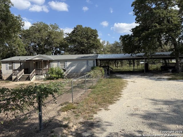Great investment opportunity! Mobile home on .82 of an acre with large towering trees,close to town and in La Vernia School District. Large attached carport with metal roof and detached storage building. Completely fenced with front gate as well. Home needs lots of TLC and is sold as is.