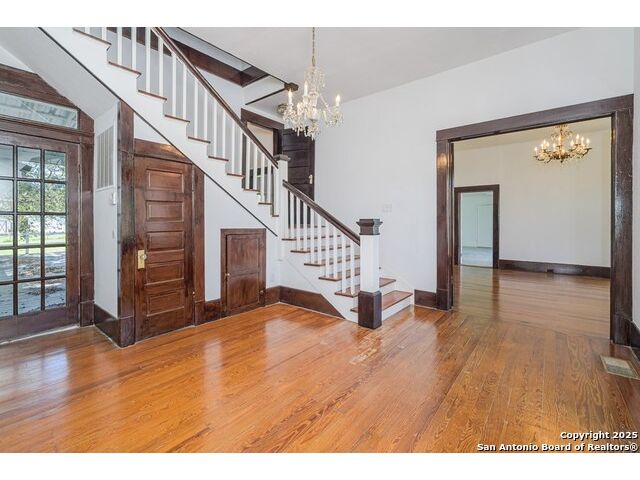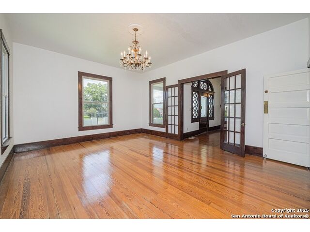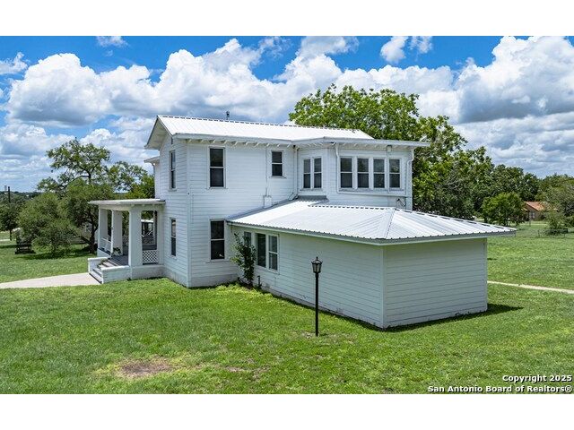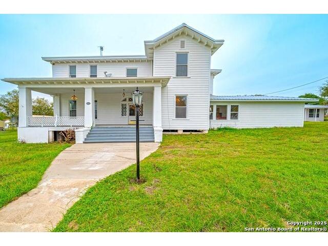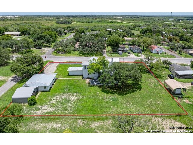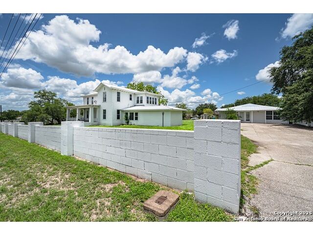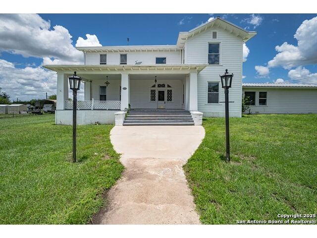 Approx. $84./sq ft. GLORIUS HOUSE...GLORIUS PRICE !!! Whether you're looking for a serene family home, a space to entertain, or the perfect setup for a home-based business, this one-of-a-kind property checks all the boxes. Step into timeless elegance with this stately Prairie-style home, thoughtfully updated for contemporary comfort. Originally built in 1900, this 3,934 sq ft residence sits proudly on nearly an acre in the heart of Pettus, TX-a peaceful small-town setting with rich history and endless charm. Showcasing exquisite details such as leaded glass windows, soaring ceilings, hardwood floors, and original moldings, the home also features modern upgrades including a durable metal roof, energy-efficient windows, central heat and air, and a newly designed primary suite on the main level. Each of the three upstairs bedrooms is generously sized and comes with its own full bath-ideal for hosting guests or accommodating a growing family. The rear of the home features an expansive great room, providing a warm and welcoming space for gatherings. Just outside, an entertainment-sized deck invites you to unwind or celebrate under the Texas sky. Additional highlights include a detached building used as an office-complete with its own bath-plus a garage and carport for ample parking. The fully fenced .877-acre lot offers privacy, space, and potential for gardening, pets, or further expansion.; Original MLS#: 113451; Deed Restrictions: ; Features: Porch-Front, Porch-Covered; Home Warranty: No; Land Dimensions: .8769; Property Condition: Excellent; Room List: Formal Living, Study/Library; Showing: Appointment Needed; Water District: Yes; Water Heater: Natural Gas; Windows: Thermal, Wood; Zoning: None