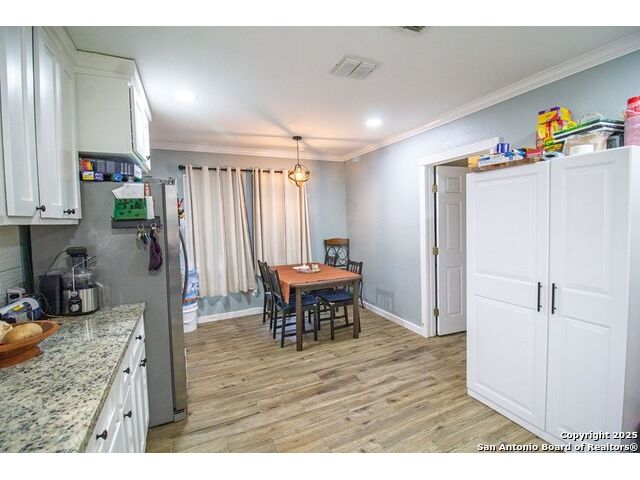 Welcome to 801 E Fannin in Beeville! This charming 3-bedroom, 2-bath cottage-style home is perfectly situated on a desirable corner lot and has been thoughtfully updated throughout, making it completely ready for a new homeowner. The exterior features durable cement fiber siding, a newer roof, and updated windows for long-lasting peace of mind. Step inside to find beautifully appointed interiors with luxury vinyl plank flooring, decorator colors, and a warm modern feel. The home offers three generously sized bedrooms and two updated bathrooms, one of which is designed in a convenient Jack & Jill style. The kitchen is a true showstopper, showcasing white cabinetry, granite countertops, and a stainless steel double sink with disposal. It also comes fully equipped with a stainless steel refrigerator with ice-maker, free-standing range, and microwave, and to make the move-in even easier, the sellers are including a washer and dryer. All of this sits on an expansive 100x140 lot, providing ample space for entertaining, gardening, or enjoying outdoor fun with family and friends. With major updates already completed and modern finishes throughout, this cozy yet stylish home offers both charm and functionality. Don't miss your chance to call this delightful Beeville home yours-schedule your private showing today!; Original MLS#: 113491; Deed Restrictions: ; Features: Porch-Front; Gas Co: None; Home Warranty: No; Land Dimensions: 100X140; Property Condition: Excellent; Roof: Shingle; Room List: Kitchen/Dining; Showing: Appointment Needed; Water District: Yes; Water Heater: Electric; Windows: Thermal, Vinyl; Zoning: Residential