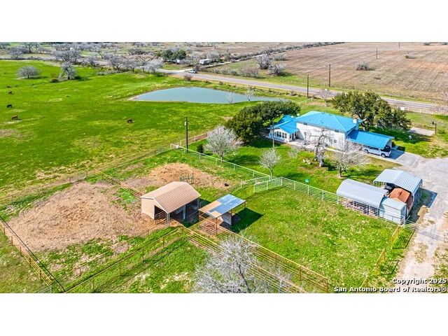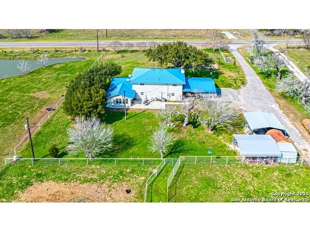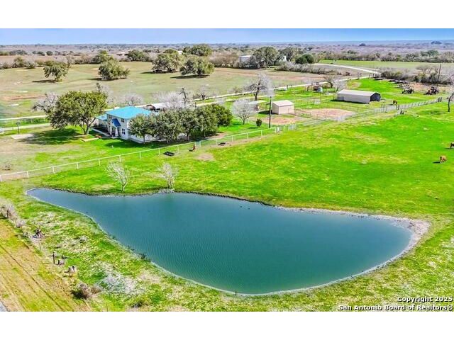 Experience the charm of this sprawling ranch home set on 17 scenic acres in North Bee County. Ideal for animal enthusiasts, bring your Longhorns, Quarter Horses, or FFA projects to enjoy the pens and corrals. Livestock will appreciate the large, picturesque tank near the house or the smaller one in the pasture. This beautiful 4-bedroom, 3-bath home underwent a thoughtful 2020 renovation, introducing an open floor plan and a downstairs primary suite. The den, featuring a wet bar and drink cooler, offers a peaceful view of the tank. At the heart of the home is a bright, welcoming kitchen showcasing new cabinetry, a white porcelain farmhouse sink, and rich wood countertops-perfect for cooking and family time. Upstairs, a flexible landing area invites game nights or quiet study. Three generous bedrooms, a full bath, and ample storage complete the upper floor. The well-appointed mudroom contains the washer, dryer, freezer, and more storage, plus another full bath nearby for added convenience. A 2-car carport on a slab can easily be enclosed to create a garage with the addition of a wall and doors. Sidewalks offer seamless access throughout the property, and the spacious patio is ideal for morning coffee or evening stargazing. Pipe fencing surrounds the home, creating a safe and welcoming environment. Additional features include 2 water wells, a barn, 2 stalls, a feed room, cross fencing, and a 3-trap setup-meeting every ranching need. Located just east of Mineral on FM 623, this property provides a peaceful setting without sacrificing accessibility.; Original MLS#: 113400; Deed Restrictions: ; Features: Porch-Front; Home Warranty: No; Land Dimensions: 17; Land Size Apx: 17; Room List: Kitchen/Dining, Living/Dining; Showing: Appointment Needed; Water District: Yes; Water Heater: Electric; Windows: Thermal; Zoning: Residential