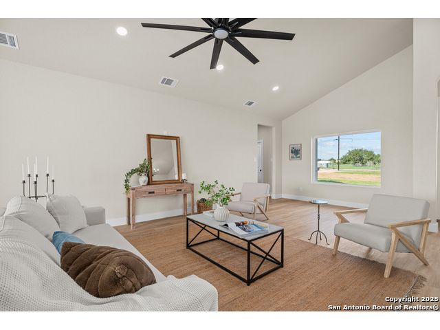 This One-of-a-kind new build is absolutely breathtaking! From the luxurious front patio to the oversized covered back patio, this meticulously crafted home sits on a perfectly sized acre lot and is ready for its first owners! The kitchen is lined in custom cabinetry, beautiful quartz countertops, all bathrooms were built with custom touches including matching quartz vanities, the owners suite contains a dreamy oversized custom closet and a custom shower with a luxurious waterfall shower head for maximum relaxation. The captivating upgrades don't stop there.. This home boasts high ceilings as well as an open floor plan with an abundance of windows allowing the sun to shine BRIGHT throughout! The additional 4th room is ideally sized to be used as a home office or a flex space. Are you ready to experience cozy yet elegant country living? Welcome home!