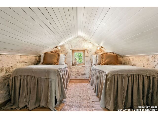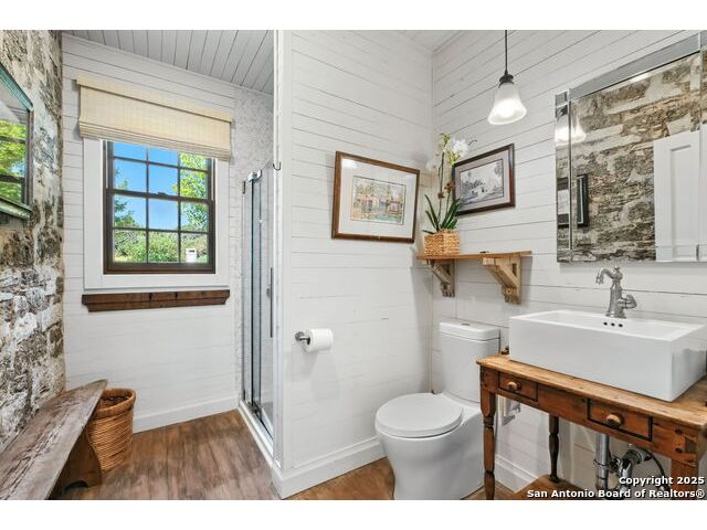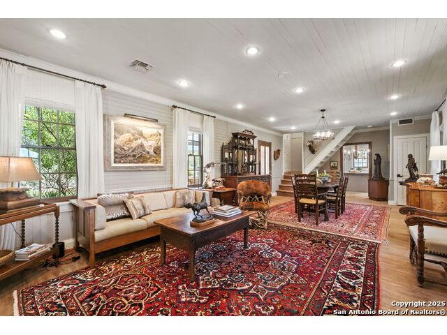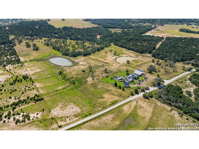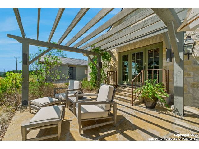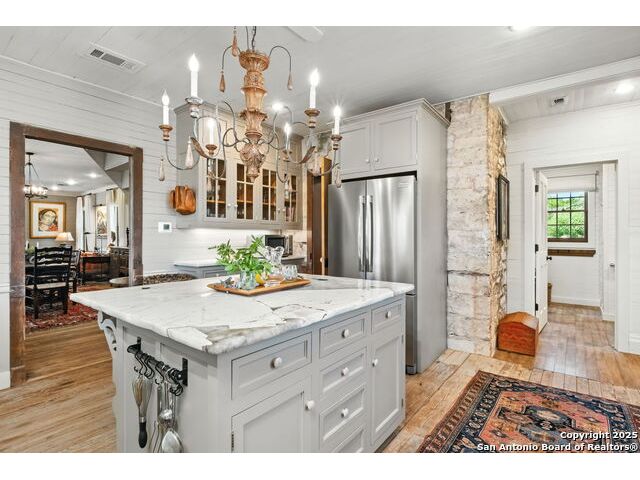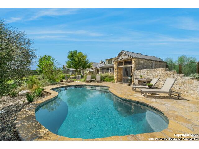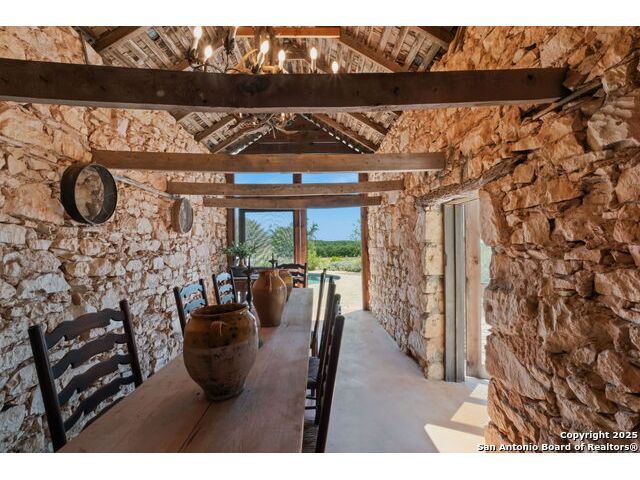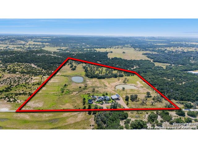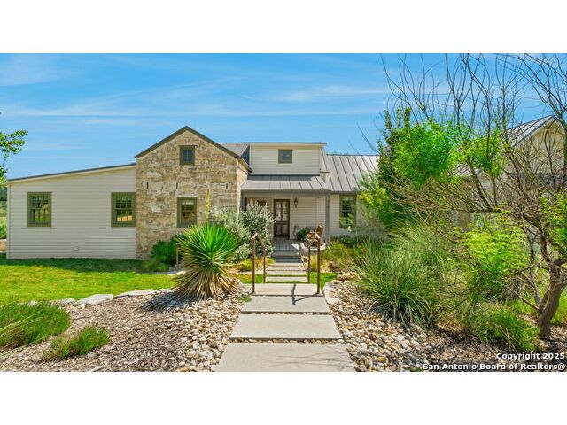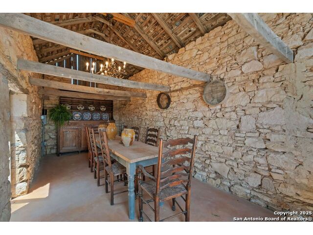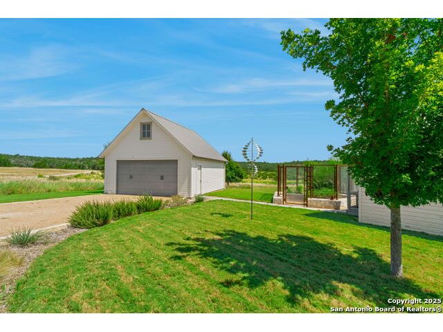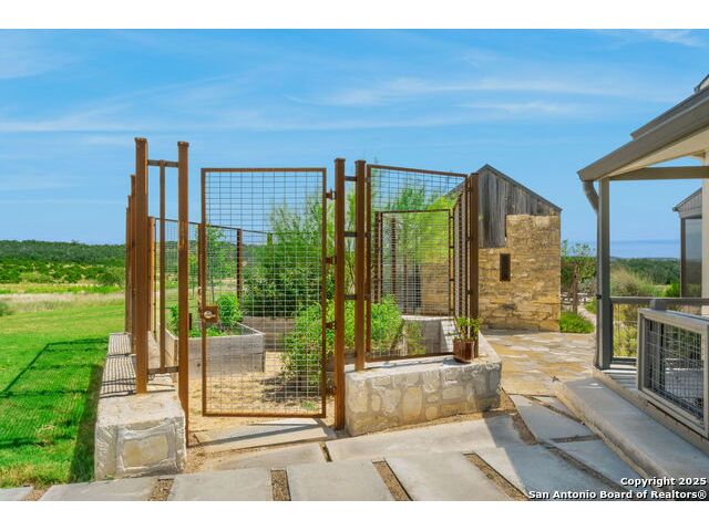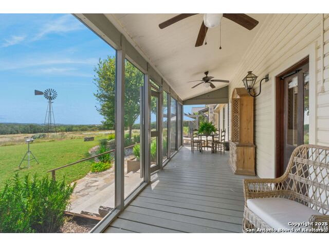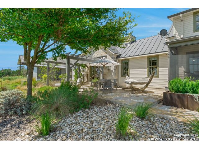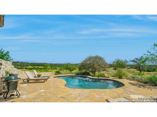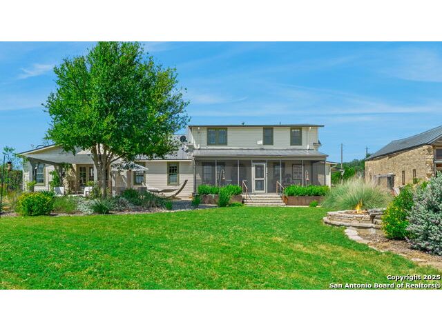 Step into a rare piece of Fredericksburg history, thoughtfully reimagined for modern living. Originally built in the 1890s by German settlers, this pioneer homestead at 716 Arbor Ridge showcases timeless masonry and authentic craftsmanship that honor its roots. The original stone barn still stands, now transformed into a screened garden room overlooking the sparkling pool, while the main limestone and wood-frame home has been meticulously expanded within the last three years by Eric Mustard Architects of Fredericksburg and M-Interiors of San Antonio. Today, it offers four bedrooms, three baths, and approximately 2,500 square feet of refined interiors, with original wood floors and stone walls beautifully preserved-adding warmth, character, and a tangible connection to the artisanship of a bygone era. Interior highlights include a modern chef's kitchen with custom cabinetry, stainless appliances, a gas range, and solid countertops. The vaulted primary suite retreat features a spa-like marble shower, whirlpool bath, and custom California Closet walk-in, complemented by a rich mahogany-paneled office. Authentic farmhouse living and dining areas with a fireplace and shiplap walls provide inviting gathering spaces, while an old root cellar has been converted into an extraordinary wine room. From hand-hewn stone walls to soaring ceilings and screened porches, every corner of the home seamlessly balances old-world character with modern luxury. Set on 25 rolling acres in the heart of Texas Hill Country, this retreat is as much about lifestyle as it is about architecture. Outdoor amenities include a sparkling pool, expansive flagstone patios, a rock fire pit, multiple screened porches, and a deer-proof garden with raised beds-all enhanced by landscape design from Oro Design Group of Austin. The grounds are further distinguished by two lined and aerated ponds stocked with bait fish, two water wells (including the original hand-dug limestone well), wildlife feeders, and an iconic windmill. A detached two-car garage with additional storage pairs with an oversized carport designed to house a Prevost bus, RV, or ranch vehicles, while concrete bunkers with a workshop area and a Generac generator provide added security. With its blend of historic integrity, thoughtful design, and rare acreage just minutes from Fredericksburg, this estate offers an extraordinary opportunity to own a piece of Texas heritage while enjoying the finest comforts of today.