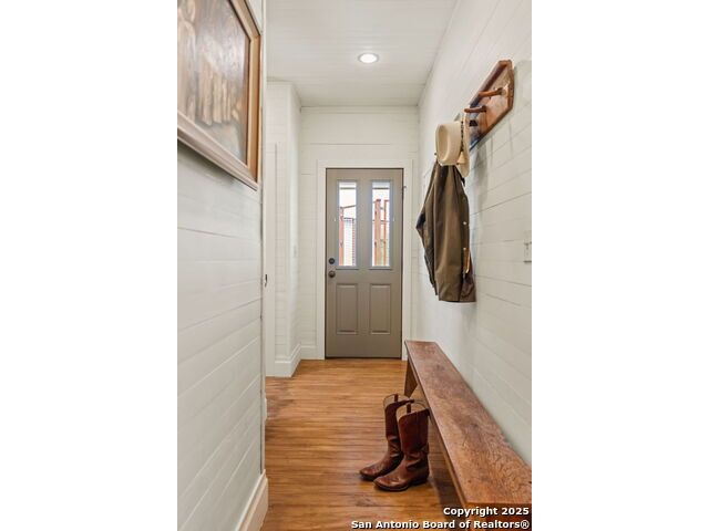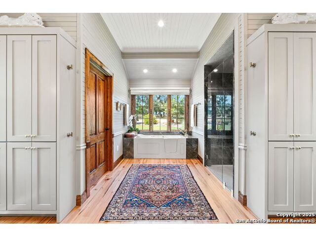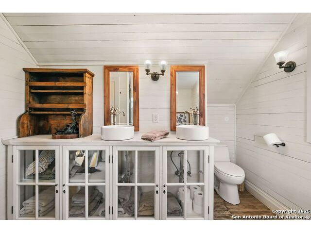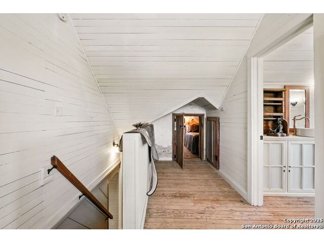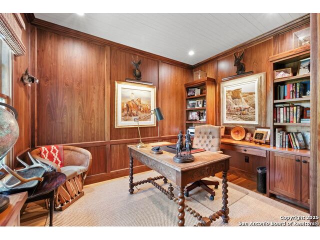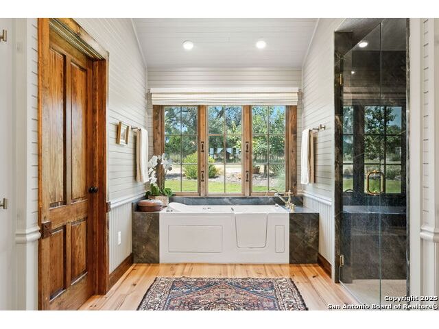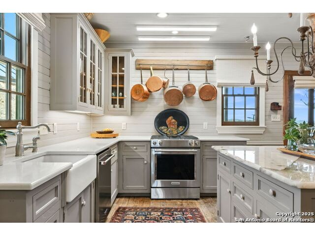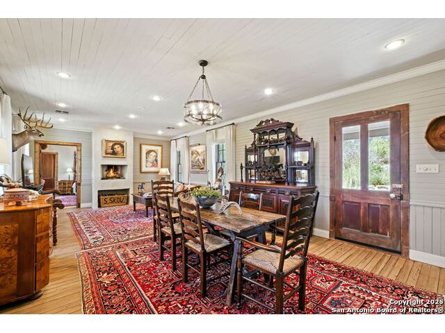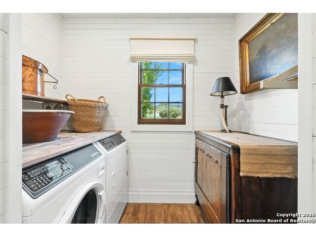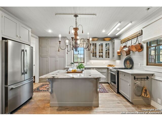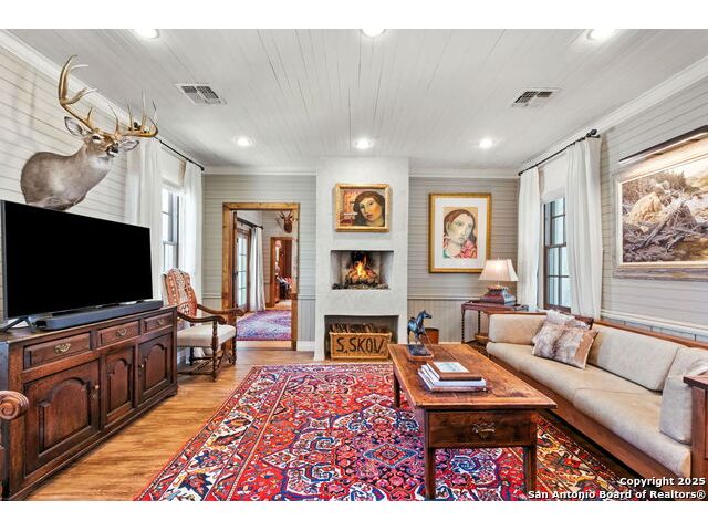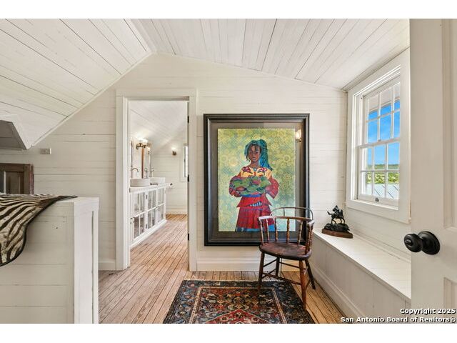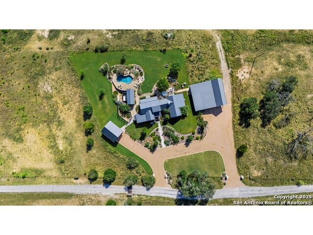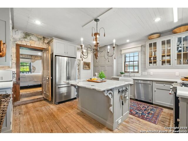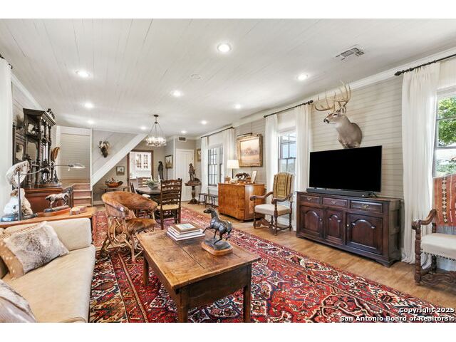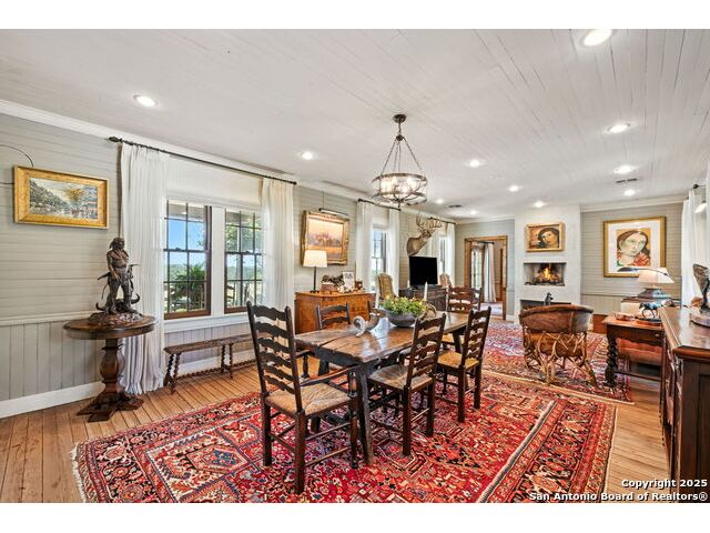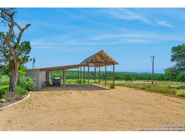 Step into a rare piece of Fredericksburg history, thoughtfully reimagined for modern living. Originally built in the 1890s by German settlers, this pioneer homestead at 716 Arbor Ridge showcases timeless masonry and authentic craftsmanship that honor its roots. The original stone barn still stands, now transformed into a screened garden room overlooking the sparkling pool, while the main limestone and wood-frame home has been meticulously expanded within the last three years by Eric Mustard Architects of Fredericksburg and M-Interiors of San Antonio. Today, it offers four bedrooms, three baths, and approximately 2,500 square feet of refined interiors, with original wood floors and stone walls beautifully preserved-adding warmth, character, and a tangible connection to the artisanship of a bygone era. Interior highlights include a modern chef's kitchen with custom cabinetry, stainless appliances, a gas range, and solid countertops. The vaulted primary suite retreat features a spa-like marble shower, whirlpool bath, and custom California Closet walk-in, complemented by a rich mahogany-paneled office. Authentic farmhouse living and dining areas with a fireplace and shiplap walls provide inviting gathering spaces, while an old root cellar has been converted into an extraordinary wine room. From hand-hewn stone walls to soaring ceilings and screened porches, every corner of the home seamlessly balances old-world character with modern luxury. Set on 25 rolling acres in the heart of Texas Hill Country, this retreat is as much about lifestyle as it is about architecture. Outdoor amenities include a sparkling pool, expansive flagstone patios, a rock fire pit, multiple screened porches, and a deer-proof garden with raised beds-all enhanced by landscape design from Oro Design Group of Austin. The grounds are further distinguished by two lined and aerated ponds stocked with bait fish, two water wells (including the original hand-dug limestone well), wildlife feeders, and an iconic windmill. A detached two-car garage with additional storage pairs with an oversized carport designed to house a Prevost bus, RV, or ranch vehicles, while concrete bunkers with a workshop area and a Generac generator provide added security. With its blend of historic integrity, thoughtful design, and rare acreage just minutes from Fredericksburg, this estate offers an extraordinary opportunity to own a piece of Texas heritage while enjoying the finest comforts of today.