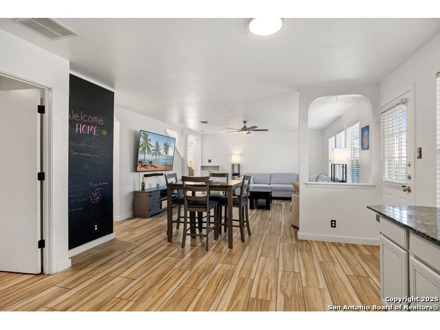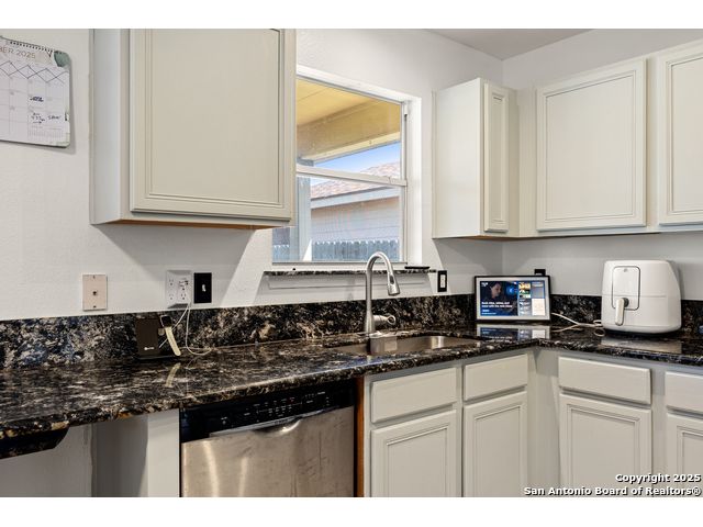 This spacious 4 bedroom, 2.5 bath home in Dove Crossing offers a welcoming layout with plenty of updates throughout. The open floor plan is filled with natural light, highlighted by vaulted ceilings that create a bright and airy feel. The main level includes a formal living room, along with a second living space overlooking the backyard that flows easily into the dining area and island kitchen. The kitchen features granite countertops and freshly painted cabinetry. A large laundry room adds extra convenience. Upstairs, the primary suite includes a relaxing ensuite bath with a soaking tub, walk-in shower, and updated finishes. Three additional bedrooms provide plenty of room for family or guests. Outside, you'll enjoy a spacious backyard with a covered porch and privacy fence, perfect for everyday living or weekend gatherings. Recent updates include fresh paint throughout, painted kitchen cabinets and vanities, new door hinges and handles, updated light fixtures, ceiling fans in all bedrooms, new bathroom mirrors, floating shelves, and new chandeliers. Dove Crossing offers great neighborhood amenities including a pool and park area. The location provides quick access to I-35, excellent schools, shopping, parks, downtown New Braunfels, and Randolph AFB. Book your personal tour today!
