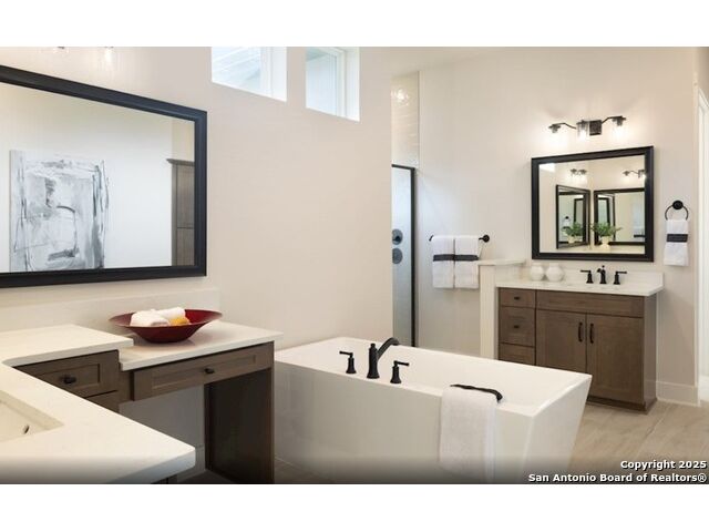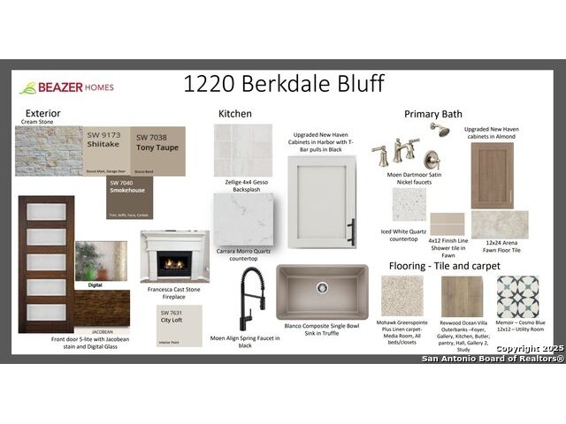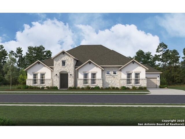 Welcome to 1220 Berkdale Bluff, a beautiful spacious single story located in the heart of San Antonio built by Beazer Homes. This stunning home features four beds, four baths, and one half bath, offering ample space for comfortable living. The 3,768 sq ft layout includes a spacious living room, a modern kitchen with built in appliances, a large island for gatherings, and a cozy dining area. The primary suite boasts high ceilings, large windows creating natural light, while the additional bedrooms provide plenty of room for family or guests. Step outside to enjoy the Texas-sized covered patio with hill country views on the half acre lot, perfect for entertaining or relaxing. Additional highlights include vaulted beam ceilings, 8 ft doors throughout, a Media Room and a 3 car side load garage. Located in the desirable Highland Estates neighborhood, this home is close to shopping, fine dining, Canyon Springs Golf, and highly rated Comal Schools, making it an ideal choice for those seeking convenience and comfort. Beazer Homes is proud to be America's #1 Energy-Efficient homebuilder. In 2024, our homes achieved an average net HERS score of 37 (including solar) and a gross HERS score of 42-the lowest publicly reported scores among the top 30 U.S. homebuilders identified by Builder Magazine's Top 100 list (ranked by 2024 closings). Take advantage of our special buyer incentives which may include closing costs, design studio upgrades, FLEX dollars, and more. Reach out to us today to learn more about how you can benefit from these exclusive offers.
