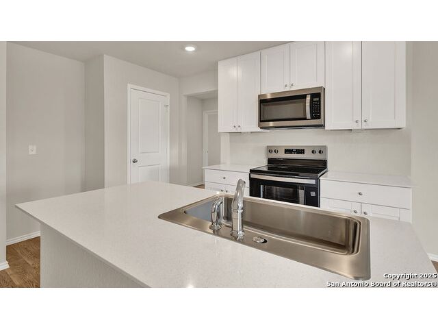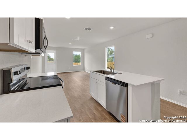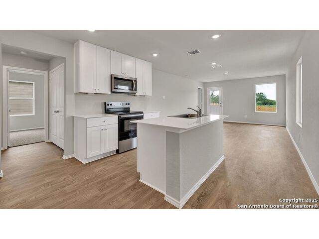 MOVE IN READY! The Atlanta is one of our one-story floorplans featured in our Ladera community in Luling, Texas. This 1,156 square foot home includes 3 bedrooms, 2 bathrooms and a 2-car garage. Our homes in Ladera feature a board and batten exterior. Step inside the Atlanta and enter the heart of the home, the open concept living space. The kitchen, dining and living room are intentionally designed for everyday living and entertaining. The kitchen features an island with a stainless-steel sink, quartz countertops, 42' upper 'picture frame' cabinets, a pantry closet, and stainless-steel appliances. The secondary bedrooms are located off the kitchen, as well as a secondary bathroom and utility room. The bedrooms include carpet and closets with wood shelving. The secondary bathroom has a shower/tub combination and a cultured marble vanity with trench sink. The primary bedroom is tucked away at the back of the home and includes an attached bathroom. Stretch out at the end of the day in this owner's retreat, which includes a walk-in shower, cultured marble vanity with trench sink and a large walk-in closet. This home features our America's Smart Home base package, which includes the Video Front Doorbell, Front Door Deadbolt Lock, Home Hub, Thermostat, and Deako Smart Switches.