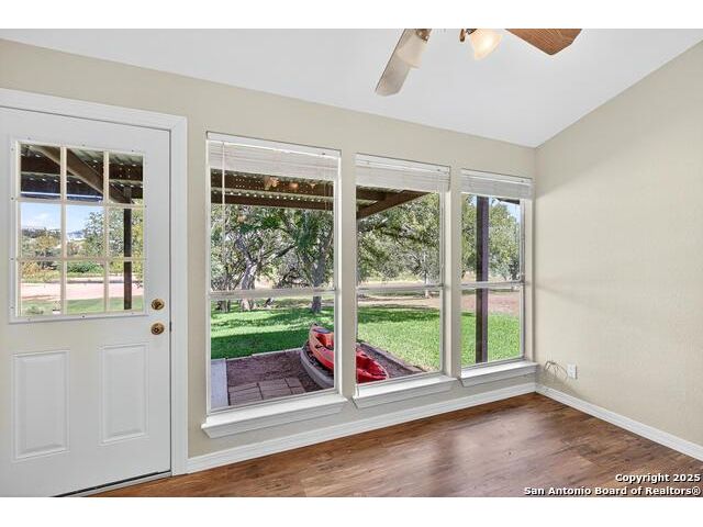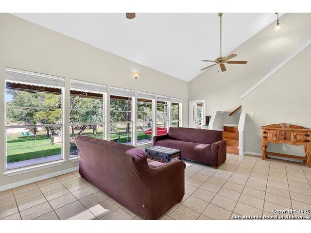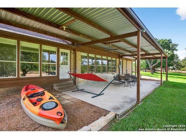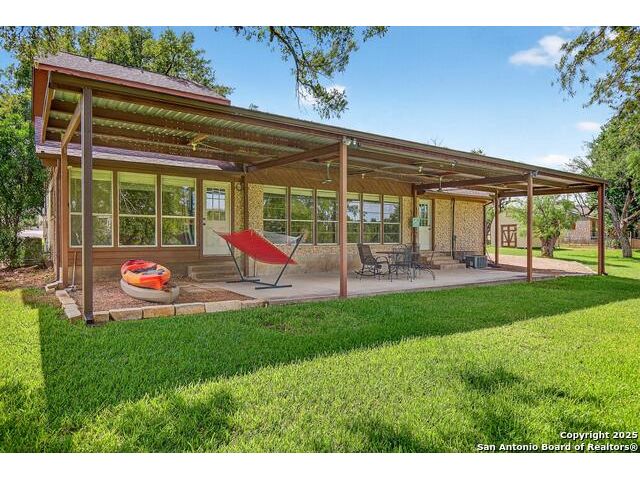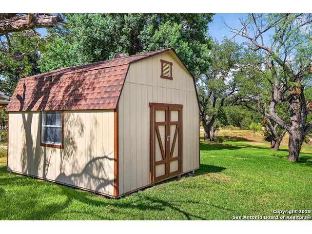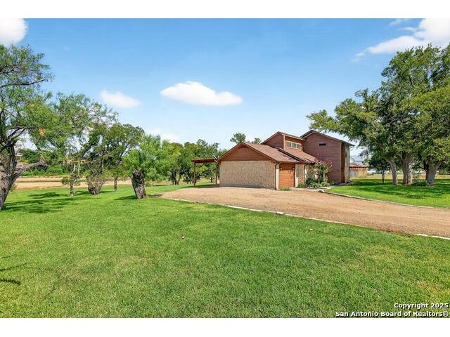 Lake LBJ Living, Elevated. With 1.69 acres and 149 feet of shoreline, this property is a rare gem-space like this on the lake doesn't come around often. Step onto your private beach for sandcastle mornings, paddleboard and kayak straight to the main lake, or tie up at your exclusive POA boat ramp just steps away. The spacious covered patio, fire pit, manicured St. Augustine grass, and mature trees set the scene for endless outdoor gatherings, while five nearby POA waterfront parks and a pavilion make hosting larger events effortless. Extra parking, an RV hookup, and a storage shed with loft keep everything organized and ready for adventure. Inside, soaring vaulted ceilings and walls of lake-view windows flood the home with light, while flexible living spaces let you tailor it to your lifestyle. The kitchen boasts lake views, bar seating, and a built-in pantry, seamlessly opening to dining and flex areas. A sunlit owner's suite with direct patio access, lake views, and a large closet creates a private retreat, while secondary bedrooms upstairs provide space and comfort for family or guests. With solar screens, a recently installed HVAC system, updated roof, and exterior stain, this home blends luxury, practicality, and low-maintenance living. Situated in Sandy Harbor, a community with its own volunteer fire department and vibrant events, this is Lake LBJ living taken to a whole new level-space, privacy, and lifestyle that's as rare as it is remarkable.