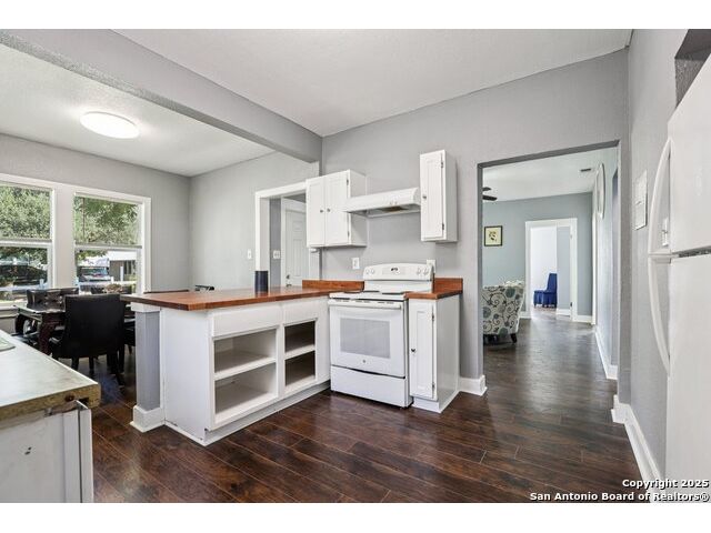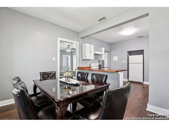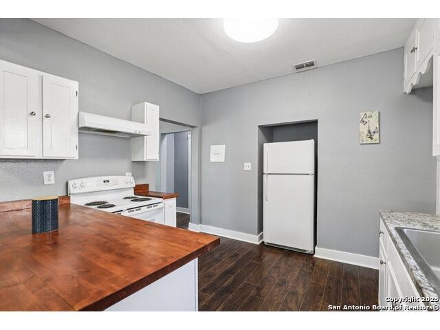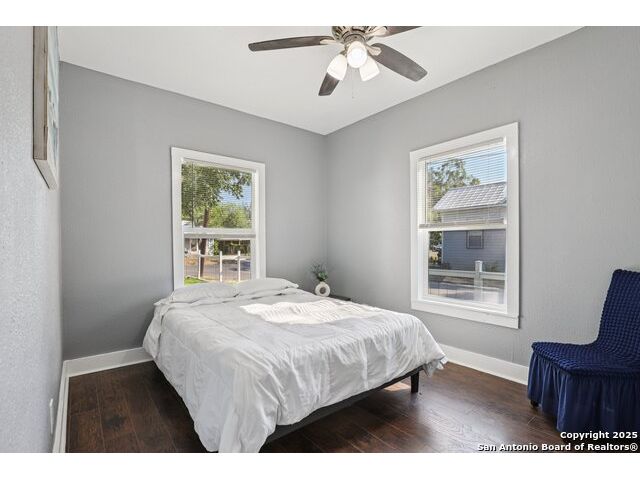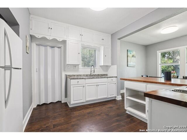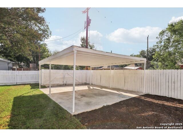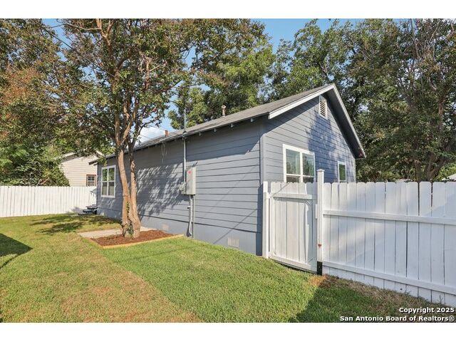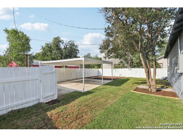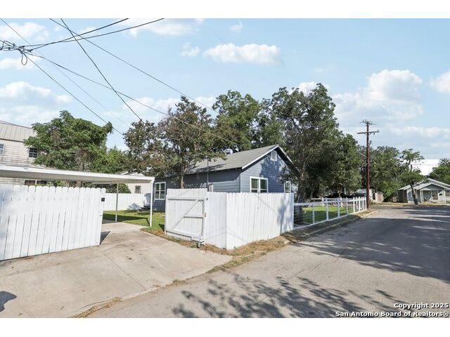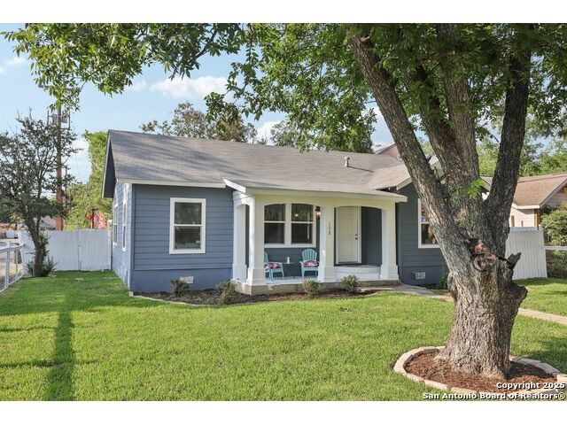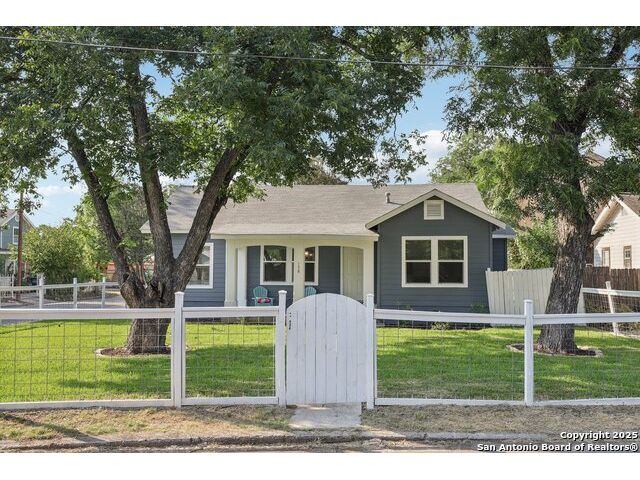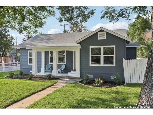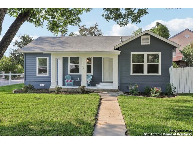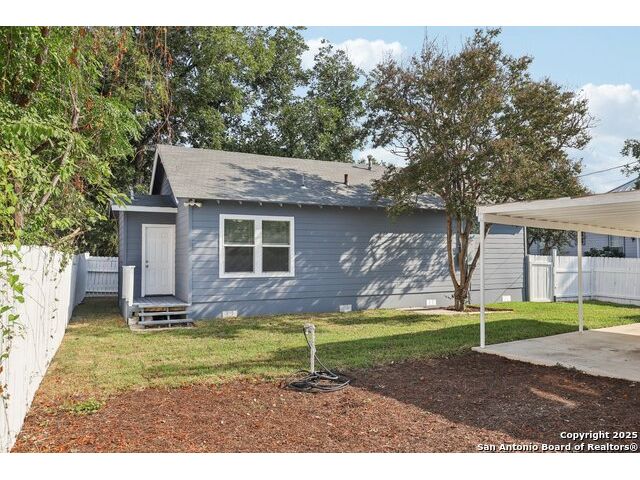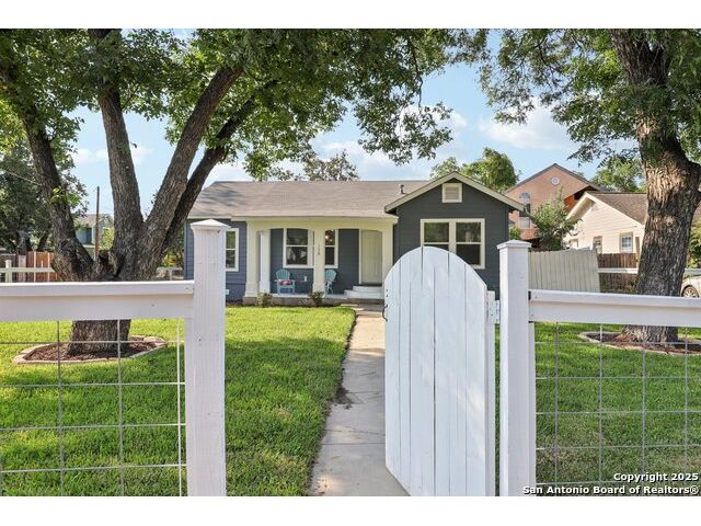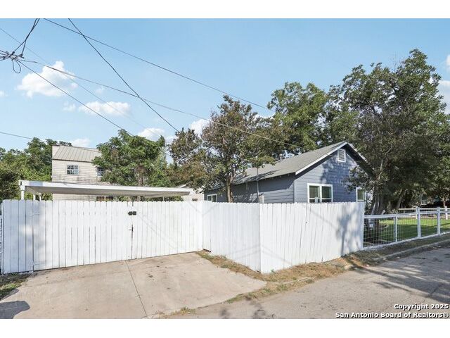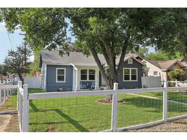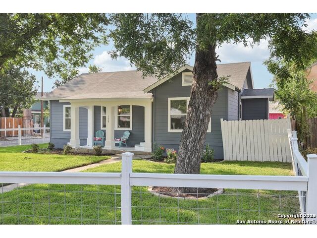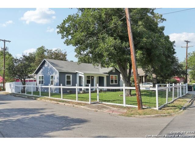 This adorable corner lot home has been updated from top to bottom and is ready for its new owner! Enjoy your morning coffee on the inviting covered front porch, surrounded by a newly sodded and fenced front yard. Step inside and be welcomed by new luxury vinyl flooring that flows throughout the home. The spacious living room features a built-in bookshelf for added character, and the open kitchen is perfect for entertaining. It boasts butcher block countertops, crisp white cabinets, and white appliances. The adjacent dining area is warm and inviting. The spacious primary bedroom is a true retreat with plenty of natural light, a ceiling fan, and a walk-in closet. The ensuite bath provides a spa-like feel with beautiful ceramic tile surrounding the shower/tub combo. The two additional bedrooms are also generously sized with their own closets and ceiling fans. Out back, you'll find a private, fully fenced yard and a deck perfect for grilling and gathering. The property also includes a long driveway and an oversized, detached 2-car carport. Recent updates for peace of mind include a new roof, siding, electrical panel, and foundation work, along with all the interior cosmetic updates-flooring, baseboards, paint, and updated bathrooms. This home is a fantastic find, blending charm, modern updates, and a great location! Located just South of Southtown, minutes from 281/37 and I-10. Close to the riverwalk, downtown San Antonio, restaurants, shopping and grocery stores!