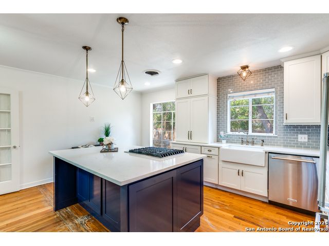 **OPEN HOUSE, Wednesday 29 October 12-3.**Charming mid-century craftsman bungalow located in the desirable Terrell Heights neighborhood. This 3-bedroom, 2-bathroom home offers approximately 1,569 sq. ft. of living space with an additional sunroom/flex room. The home features original hardwood floors and a garage conversion for added functionality. Renovations completed in 2018 include the kitchen, both bathrooms, and the garage conversion. The kitchen is equipped with quartz countertops, KitchenAid appliances, and updated cabinetry. Interior and exterior were freshly painted in August 2025. This home is located within Alamo Heights ISD and offers convenient access to major destinations: less than 5 minutes from the Quarry, Lincoln Heights H-E-B, and dining/shopping options; 10 minutes from the Pearl District and downtown; ~15 minutes to Ft. Sam/BAMC; and ~20 minutes to Randolph AFB. Unique to this neighborhood, mail is delivered by a walking mail carrier, one of the few areas in San Antonio where this tradition remains.