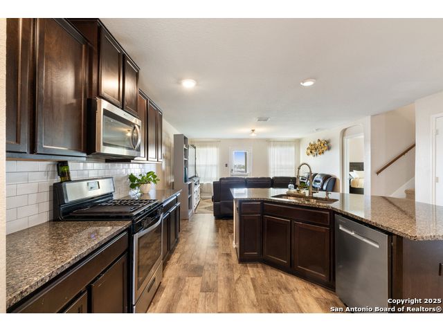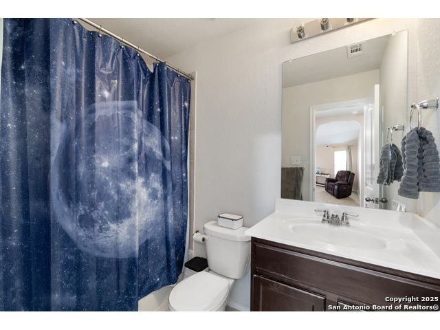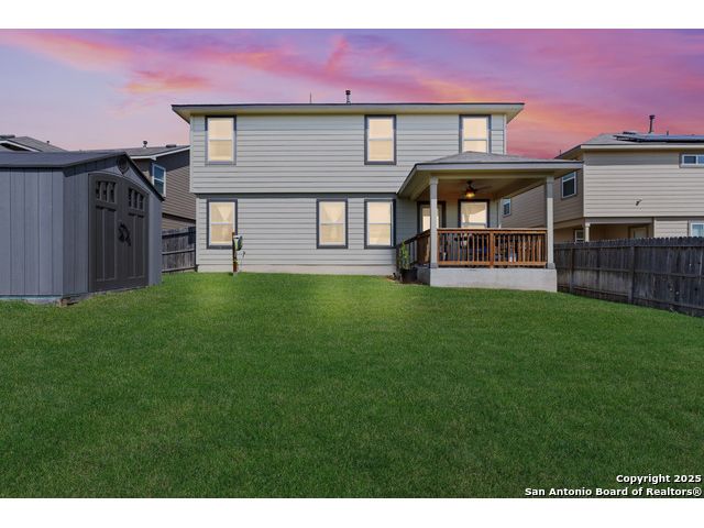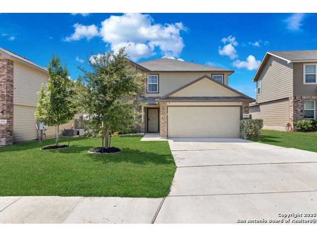 Welcome to 8054 Falcon Meadow in Converse, a spacious and well-designed home that truly has it all! Offering 5 bedrooms, 3.5 baths, and 2,679 square feet of living space, this larger home is perfect for families looking for comfort, functionality, and convenience. The primary bedroom is located downstairs, providing a private retreat with a generous layout, walk-in closet complete with dual vanities, a soaking tub, and a separate shower. Upstairs, you'll find four additional bedrooms along with a large game room/flex space, ideal for a media room, home office, or playroom-giving everyone plenty of room to spread out. The open-concept kitchen and living area make entertaining easy, featuring abundant cabinetry, granite counters, and a breakfast bar that flows seamlessly into the dining and living spaces. Step outside to a spacious backyard with a covered patio, perfect for weekend BBQs, outdoor play, or relaxing under the Texas sky. The yard also INCLUDES A STORAGE SHED for added convenience. Beyond the home, residents enjoy access to a resort-style amenity center featuring a sparkling pool, splash pad, basketball court, playground, and shaded pavilion areas-perfect for summer fun and community gatherings. Located near Randolph AFB, shopping, dining, schools, and major highways, this home combines space, amenities, and location into one incredible package. Don't miss your opportunity to own this beautiful property-schedule your showing today!