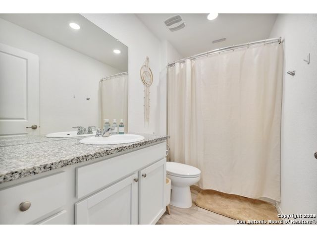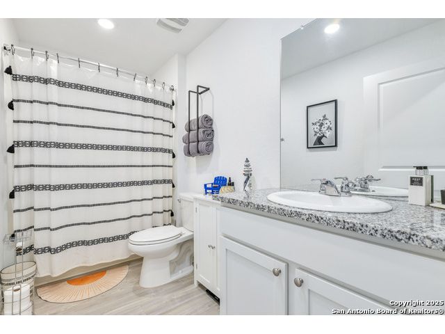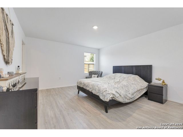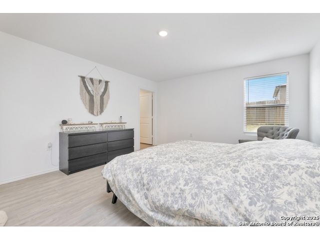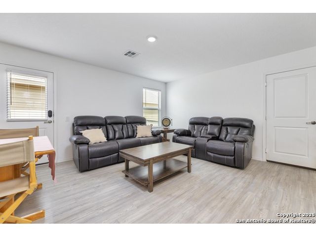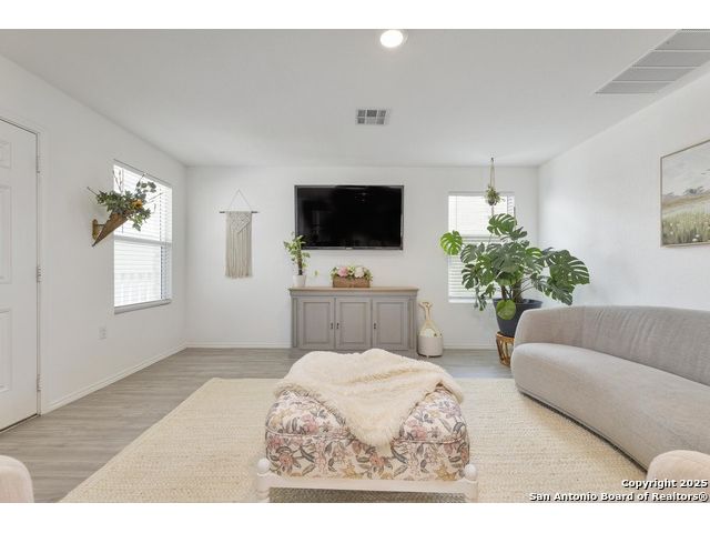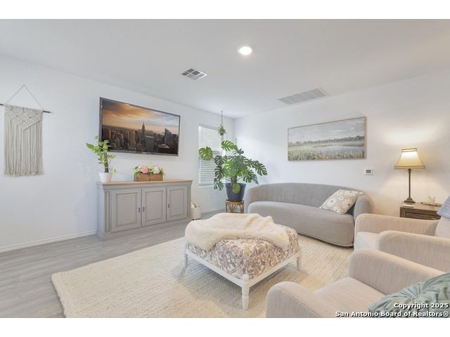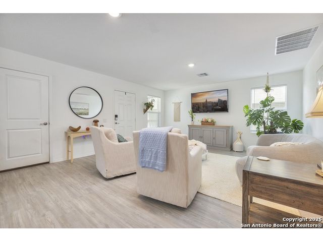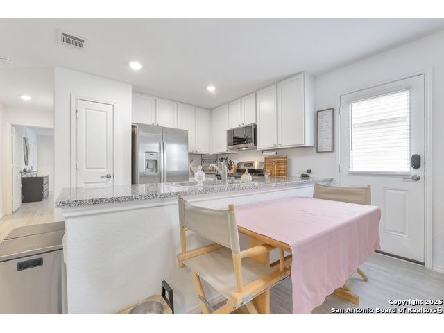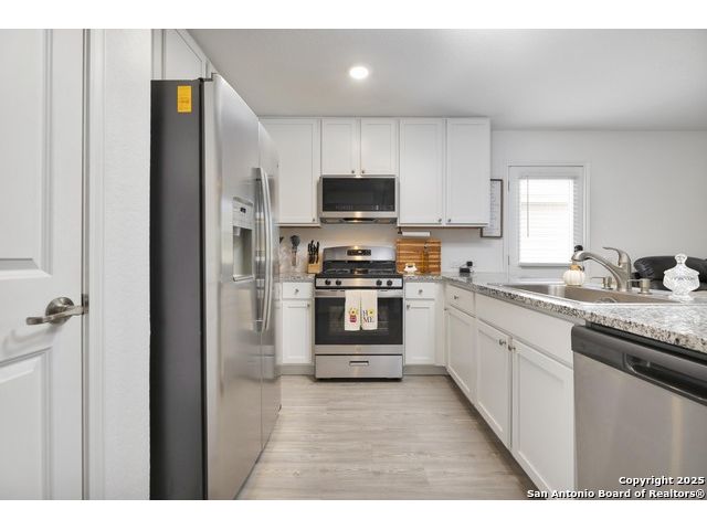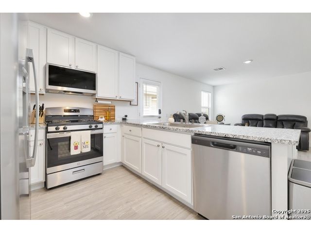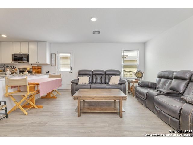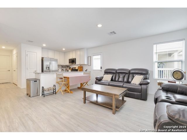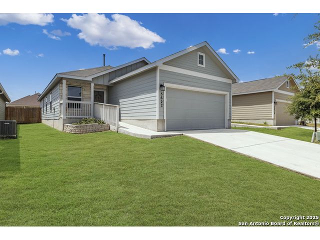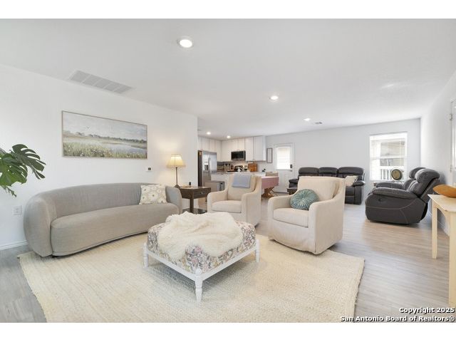 Welcome to this modern single-story home in Northeast Crossing. Built in 2021, this move-in ready 3-bedroom, 2-bath layout offers clean design, open space, and low-maintenance living. Step inside to an open-concept living and dining area with upgraded wood-look flooring and abundant natural light. The kitchen features granite countertops, white cabinetry, stainless appliances, and a gas range - perfect for home chefs and everyday ease. The spacious primary suite includes a walk-in closet and private bath with granite vanity and shower/tub combo. Two additional bedrooms provide flexibility for guests, kids, or a home office. Enjoy a fully fenced backyard, ideal for pets or play, plus a 2-car garage and wide driveway. The neighborhood is tucked into NEISD with no city taxes and convenient access to Loop 410, I-35, and Fort Sam.