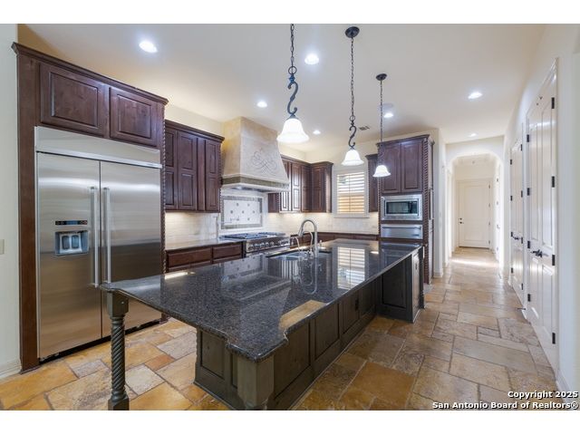 Welcome to your new, freshly painted, home at 22403 Viajes nestled in the gated and highly coveted subdivision of Campanas. This breathtaking home offers a wonderful balance of luxury and functionality combined with a Tuscan vibe. This ONE OWNER Sitterle home has the distinction of being the largest single story home, on one of the largest lots, with a pool! As you enter your new home you will be greeted with an atmosphere of warm elegance as you take in the Mediterranean inspired custom paint, soaring ceilings and high end finishings. Imagine yourself living and entertaining in a spacious open floor plan home with a gourmet kitchen featuring an oversized island and top of the line stainless steel appliances. Additional highlights are 3 bedrooms, a dedicated office, two dining areas and an extra room that can flex as a 4th bedroom, craft room, second office, etc. You will have your choice of two outside areas for relaxing and entertainment. The back patio offers tranquility overlooking the pool while listening to the waterfall or you can enjoy the sounds of nature while sitting on covered side patio. Campanas offers a community pool, club house, tennis court, fitness center, walking trail and proximity to the JW Marriott.