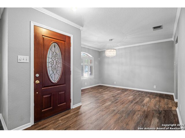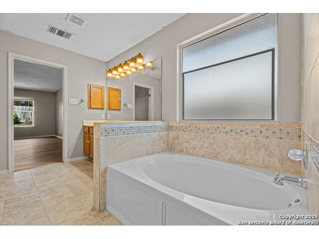 Beautiful home available for sale in Crestlake! Freshly painted throughout. Great floorplan for entertaining with 2 huge living areas, formal dining room, eat in kitchen. New (Aug 2025) vinyl flooring installed throughout home. Ceramic tile in bathrooms. No carpet! Recently renovated kitchen with granite countertops, tons of cabinet space and stainless steel appliances. Secondary bathroom renovated in August 2025 has tile shower/tub combination and new vanity. Primary suite is spacious with large windows that gives plenty of natural light. Primary bath has double vanity, with large shower and garden tub. Backyard has huge deck with pergola. Brick exterior on all four sides. Fantastic location with easy access to Loop 410.
