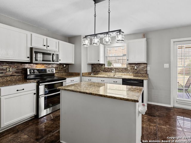 This spacious 5-bedroom, 2.5-bath home offers plenty of room for the whole family. All furniture in the home is for SALE!! New Roof! The master suite is conveniently located downstairs with an oversized tub and separate shower. Inside you'll find a formal living/dining area, with saltillo tile floors an island kitchen with breakfast nook, and a large bay window that fills the living room with natural light. Upstairs features 4 HUGE bedrooms and a BIG BIG loft/game room perfect for entertaining or relaxing. Extras include a sprinkler system and water softener. Garage is tiled and fully painted. Home is an easy access to all major highways, shopping, and even Walmart within walking distance, plus the ability to walk to Lackland, this home is clean, convenient, and easy to show!