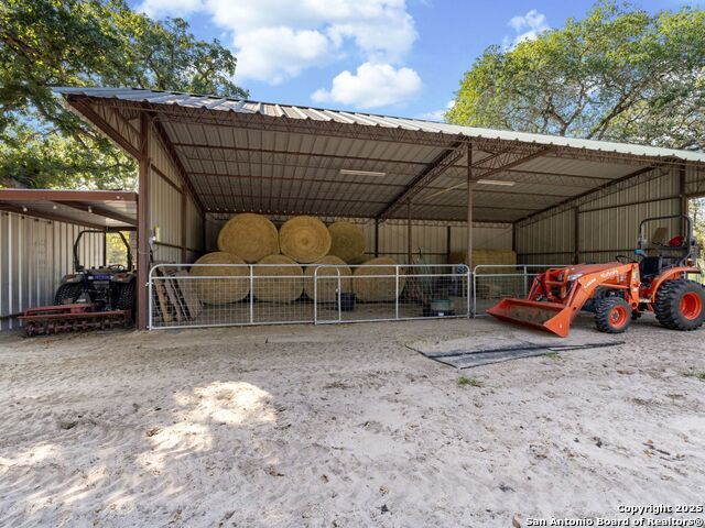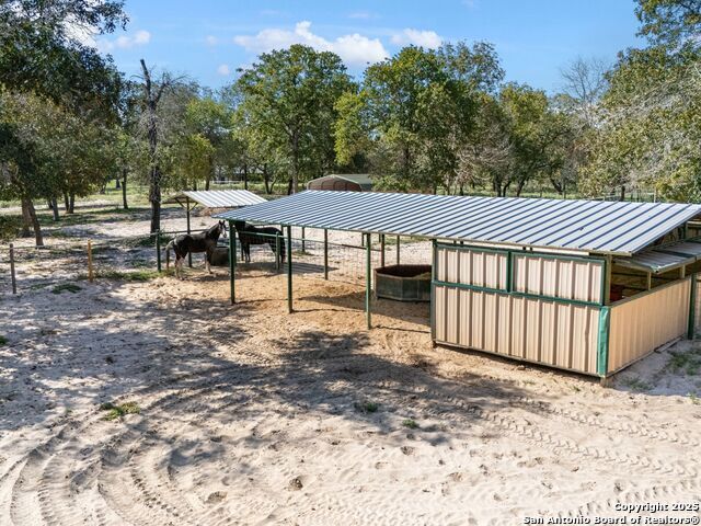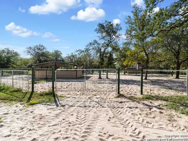 Escape to the tranquility of country living. Nestled on 10 sprawling acres near Floresville, this exceptional property offers the perfect blend of a peaceful rural retreat and an entertainer's paradise. This property is a rare find, featuring a valuable agricultural valuation that keeps your taxes low while you enjoy the wide-open spaces. The property is thoughtfully designed with equestrian improvements, providing a ready-made setup for your equine companions. Schedule your private tour today! Property improvements include well maintained perimeter and cross fencing, two covered paddocks with water and power, 25 x 30 equipment shed, 43 x 22 hay barn with lean to, 25 x 18 feed shed, 20 x 12 tack room (all with electrical power), and wash rack area.