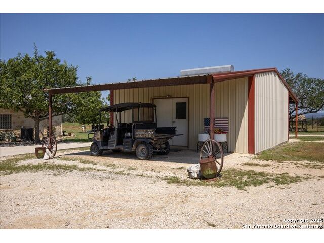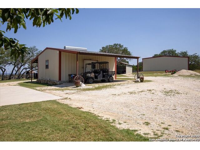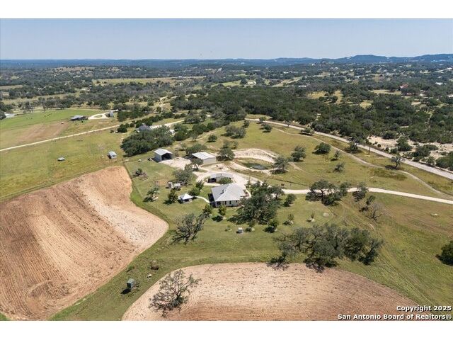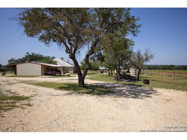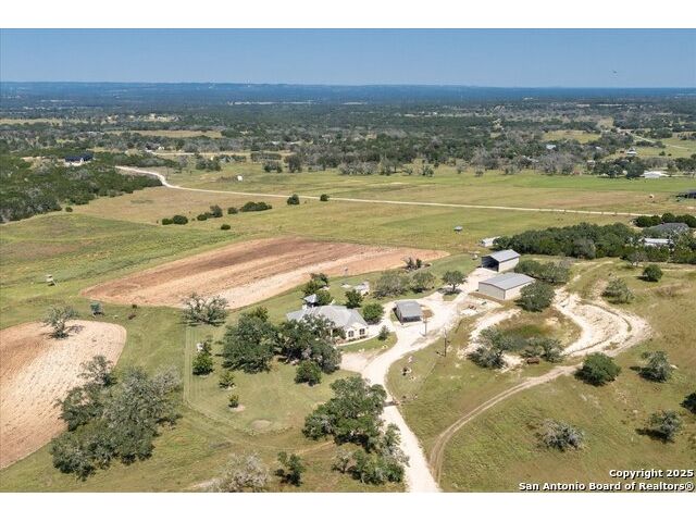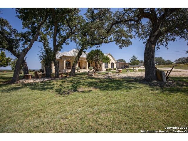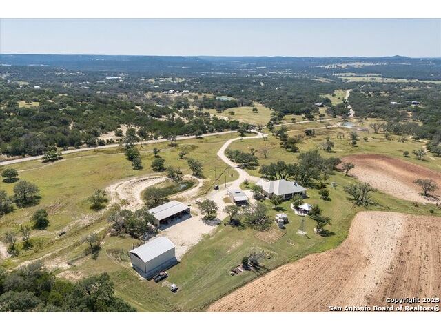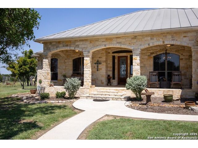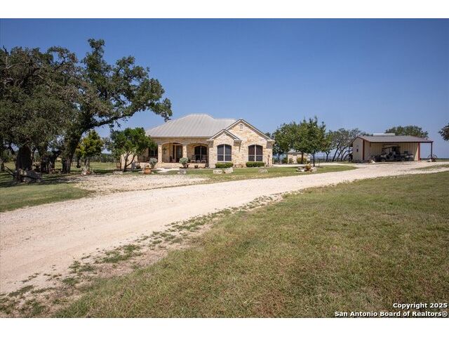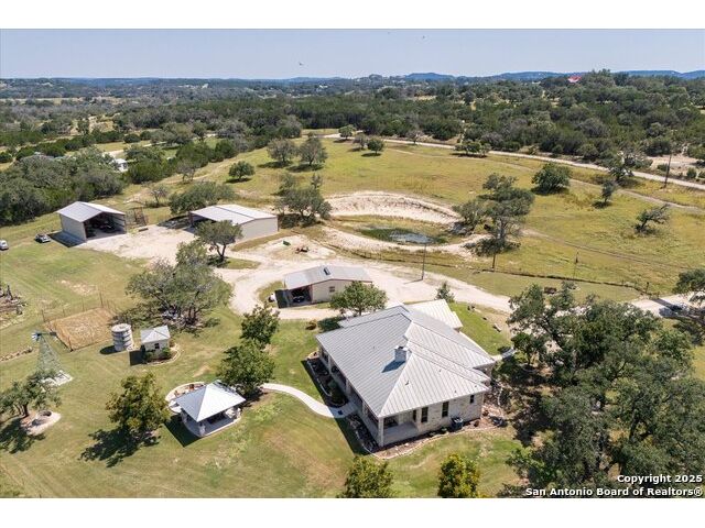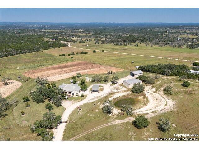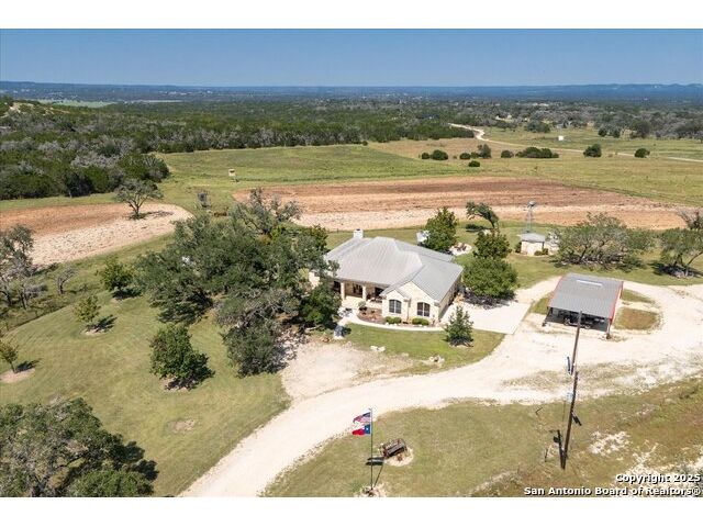Experience Hill Country living at its finest with this unrestricted ranch property just 15 minutes from Boerne and the historic town of Comfort. Set behind a private electric gate, this property offers sweeping Hill Country views, wide-open spaces, and the perfect blend of comfort and functionality. The custom-built single-story home by Kevin Katzer welcomes you in. This beautiful home has a stunning floor to ceiling rock surround propane/wood burning fire place in the living room that sets the tone for conversations and cozy winter days. An open kitchen concept with oversized island has built in stainless appliances complete with warming drawer. The primary suite is separated from the other bedrooms and has outdoor access to the patio and includes a spacious en-suite bathroom. Double vanities, jetted tub and walk in shower. Laundry room with storage, sink and window for light. Step outside to a covered patio with seating and room for all the fun conversations! A pergola with built in sink, twinkling lights and and a round fire pit-ideal for evenings under the Texas sky. Designed with both recreation and ranching in mind, the property is fully fenced and cross-fenced, making it ready for livestock or horses. Two large barns (40x60) with enclosed storage area, a (30x45) with RV hookup, and a spacious 24x24 workshop (complete with bathroom) all feature electric service, providing ample space for storage, projects, and ranch operations. An agricultural exemption keeps property taxes low, spray foam insulation adds to the low electric bills, all adding long-term value to this remarkable Hill Country retreat. Whether you're seeking quiet country living, generational living opportunity, a property to work the land, an equestrian space, or simply a peaceful escape with modern conveniences nearby, this property offers it all. Get your showing scheduled today!
