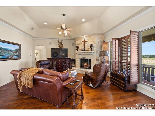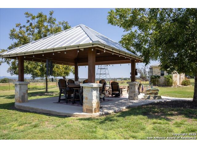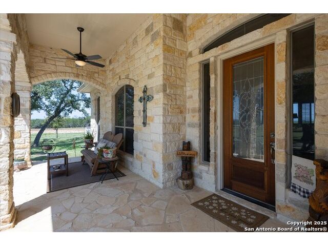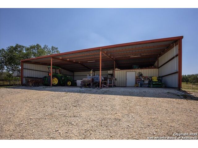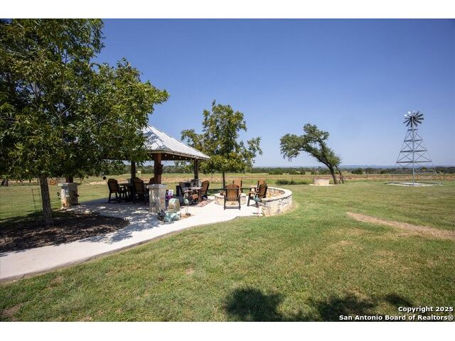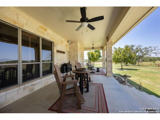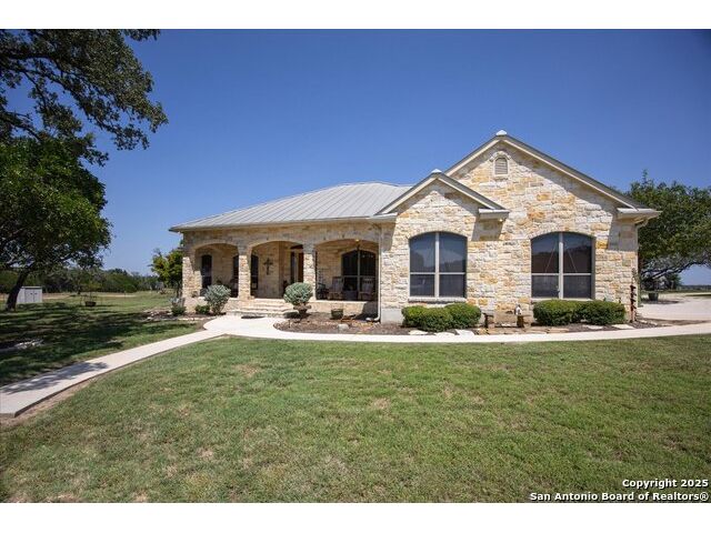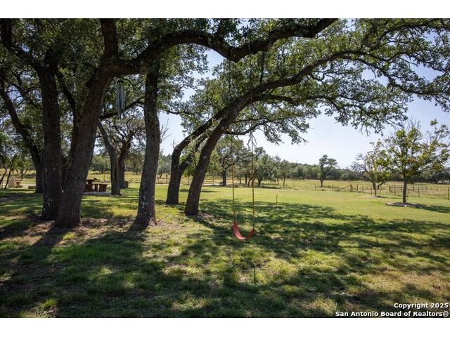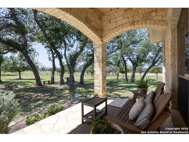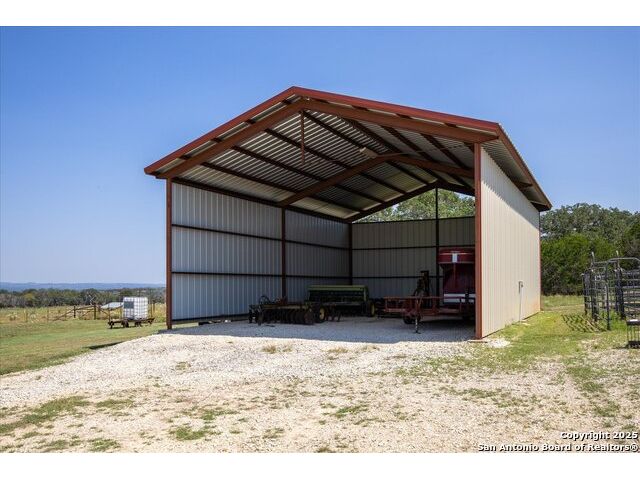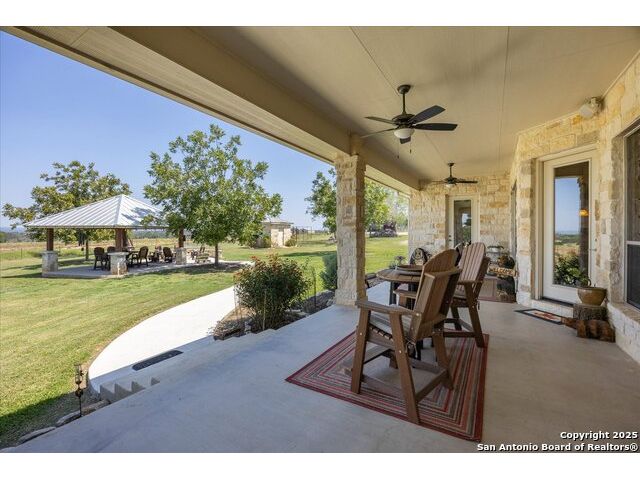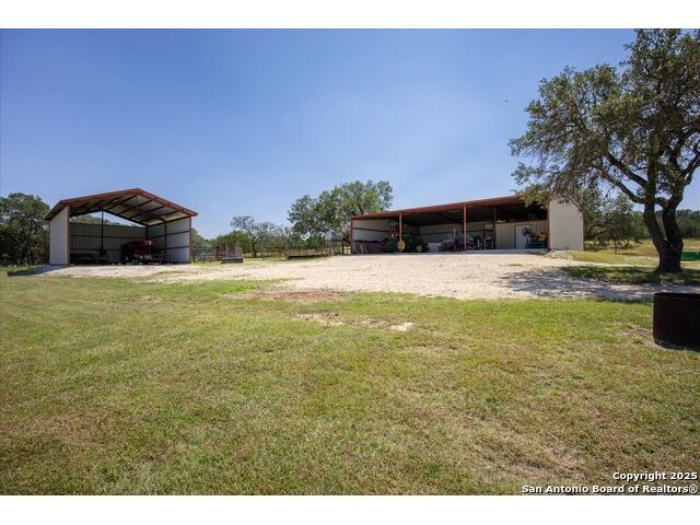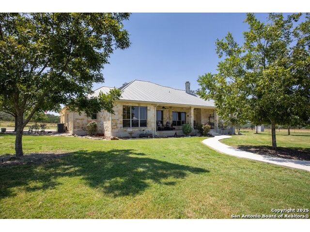Experience Hill Country living at its finest with this unrestricted ranch property just 15 minutes from Boerne and the historic town of Comfort. Set behind a private electric gate, this property offers sweeping Hill Country views, wide-open spaces, and the perfect blend of comfort and functionality. The custom-built single-story home by Kevin Katzer welcomes you in. This beautiful home has a stunning floor to ceiling rock surround propane/wood burning fire place in the living room that sets the tone for conversations and cozy winter days. An open kitchen concept with oversized island has built in stainless appliances complete with warming drawer. The primary suite is separated from the other bedrooms and has outdoor access to the patio and includes a spacious en-suite bathroom. Double vanities, jetted tub and walk in shower. Laundry room with storage, sink and window for light. Step outside to a covered patio with seating and room for all the fun conversations! A pergola with built in sink, twinkling lights and and a round fire pit-ideal for evenings under the Texas sky. Designed with both recreation and ranching in mind, the property is fully fenced and cross-fenced, making it ready for livestock or horses. Two large barns (40x60) with enclosed storage area, a (30x45) with RV hookup, and a spacious 24x24 workshop (complete with bathroom) all feature electric service, providing ample space for storage, projects, and ranch operations. An agricultural exemption keeps property taxes low, spray foam insulation adds to the low electric bills, all adding long-term value to this remarkable Hill Country retreat. Whether you're seeking quiet country living, generational living opportunity, a property to work the land, an equestrian space, or simply a peaceful escape with modern conveniences nearby, this property offers it all. Get your showing scheduled today!