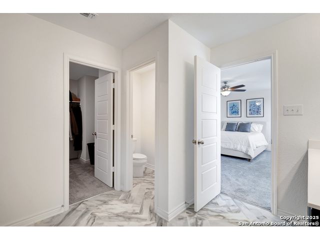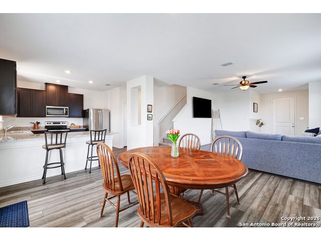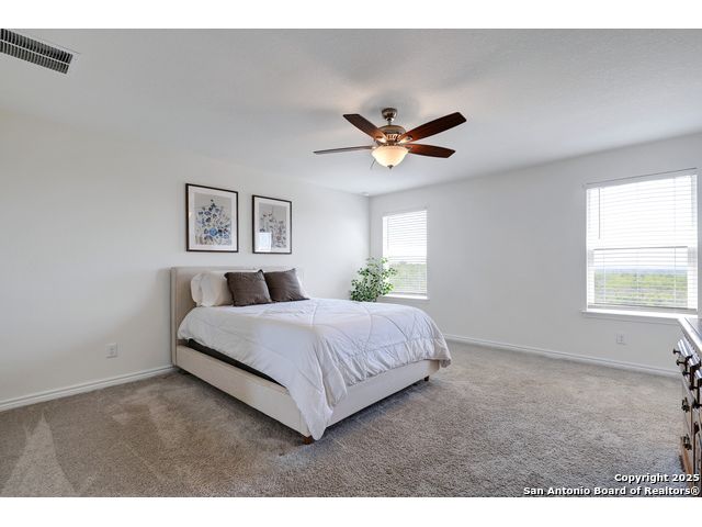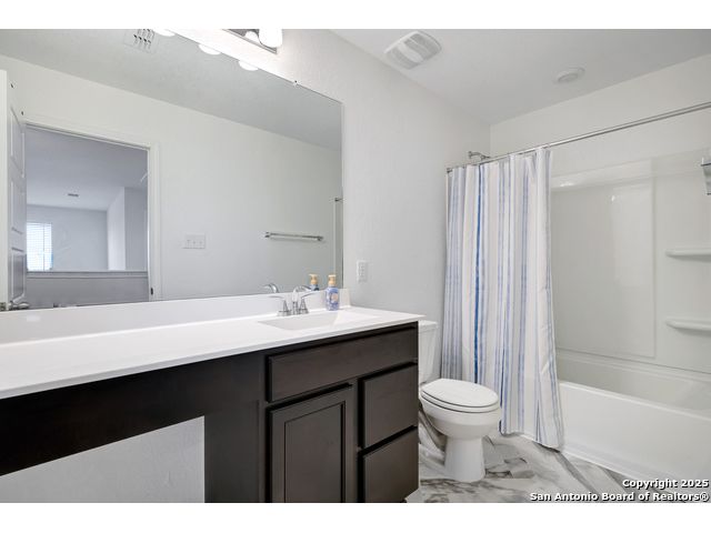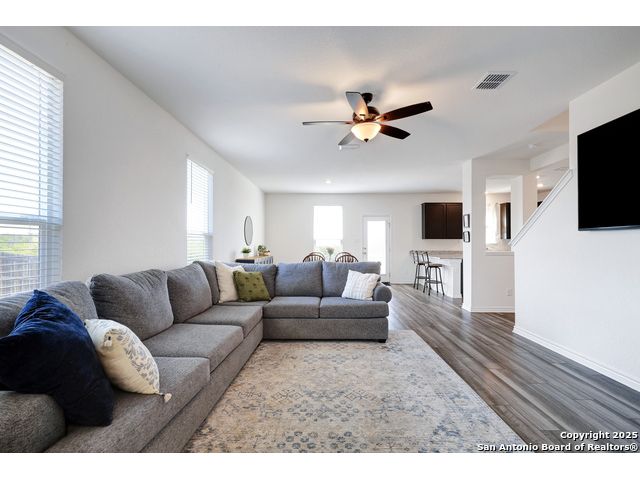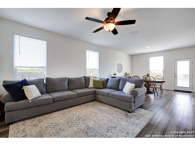 Welcome to your nearly new San Antonio home, built in 2023! This modern two-story offers 3 spacious bedrooms, 2.5 bathrooms, and an open-concept main floor designed for both everyday living and entertaining. The kitchen is a true highlight with generous counter space, sleek finishes, and a large walk-in pantry that keeps everything organized. Upstairs, you'll find a versatile loft that makes the perfect game room, second living area, or home office. The laundry room is conveniently located upstairs near all the bedrooms, making daily routines a breeze. Step outside to enjoy a large backyard with serene country views, offering a peaceful backdrop for morning coffee or weekend barbecues. The community itself is equally inviting, complete with a neighborhood pool for summer fun and relaxation. Only 18 minutes from Lackland AFB, plus close to shopping, restaurants, and more. With its modern build, thoughtful layout, and unbeatable views, this home blends style, comfort, and convenience in one perfect package.