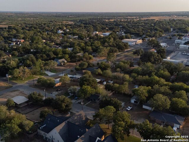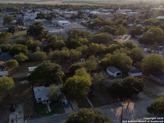 This 2-bedroom, 1-bathroom single-family home is located in downtown Floresville, offering convenient access to shopping, dining, groceries, and other essential services. The interior features a modern-style kitchen with updated finishes and updated flooring. Recent improvements include a brand new roof, new water heater, fairly new A/C system, and updated appliances. The backyard includes a gazebo, providing a designated area for outdoor cooking or entertainment. Also included is an oversized storage shed located in the backyard for additional storage and convenience. This property offers a functional layout with recent updates in a central location.