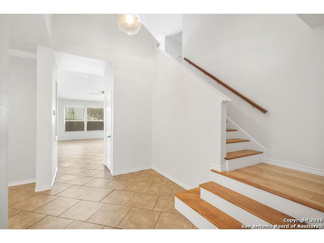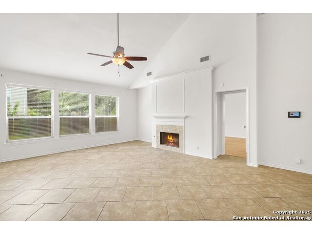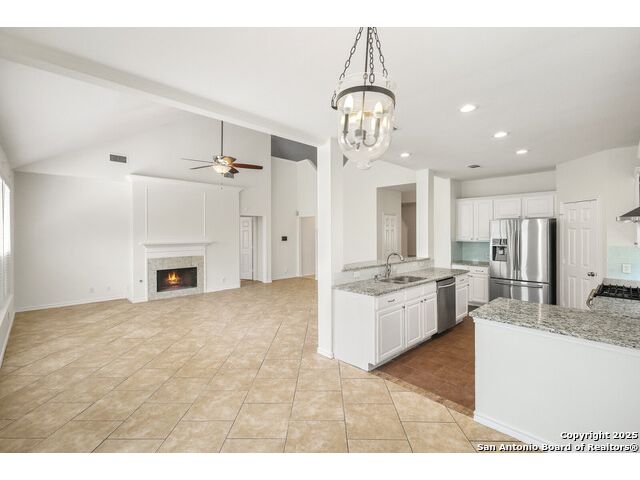Graceful Home Near UTSA, Six Flags, Medical Center & La Cantera! Welcome to this beautifully maintained home in established neighborhood known for its mature trees, walkable sidewalks, and community amenities including a pool, park, BBQ/Picnic area, clubhouse, and basketball court. This pristine home offers thoughtful upgrades such as: -Smart Home Technology Features -Impressive 19' High Ceilings -Stylish kitchen upgrade -Eatery kitchen bar -Painted interior & exterior, -Fireplace -Upgraded bathrooms -Large Windows This open and inviting layout includes Foyer entryway with sky-high ceilings, Formal living area and formal dining area Spacious family room, and breakfast nook. Tile and hardwood flooring throughout - no carpet. Upstairs loft/den with potential to enclose as a 5th bedroom. Walk-in closets in most bedrooms. The exterior is equally appealing with manicured landscaping, roof gutters, and a spacious front porch enhanced with stylish patio tile for a warm welcome. Big backyard for entertaining and equally quite for relaxing. This move-in ready home offers comfort, style, and flexibility in a prime location near top attractions and shopping.
