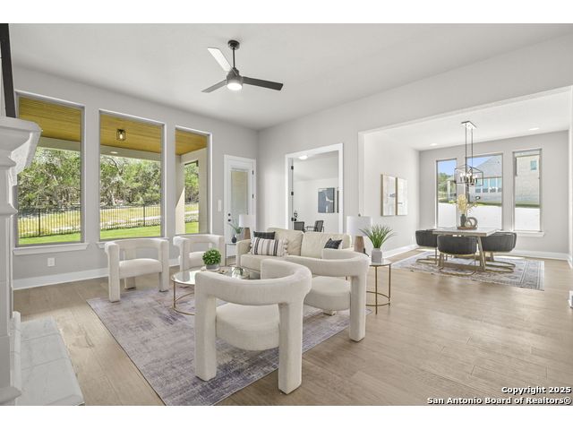 MLS# 1907085 - Built by Drees Custom Homes - Ready Now! ~ This 2,732-square-foot single-story home features 4 bedrooms, 3 bathrooms, and a 2-car garage, all enhanced by soaring 12-foot ceilings and expansive 8-foot windows that flood the space with natural light. The gourmet kitchen boasts quartz countertops, shaker cabinets, a large island, and built-in appliances including double ovens. The spacious primary suite includes a luxurious bath with a separate tub and shower, and dual walk-in closets. With upscale finishes, a huge, covered patio, this home offers both elegance and everyday comfort.