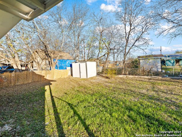 This 3-bedroom, 1-bath home with a tandem offers a functional layout and comfortable living spaces inside and out. The living room opens to a separate kitchen featuring a new tile backsplash (installed 2024). The bathroom includes a newly tiled shower (2024), and all bedrooms are well-sized with shared access to the full bath. Enjoy the spacious backyard-ideal for everyday use or weekend gatherings. Recent improvements include a new roof (2024) and foundation repair (June 2024). Conveniently located just minutes from Loop 410, Hwy 151, shopping, dining, and within walking distance to Monterrey Park with pool, playground, and sports courts. Nearby are St. Mary's University, Our Lady of the Lake University, and Lackland AFB.