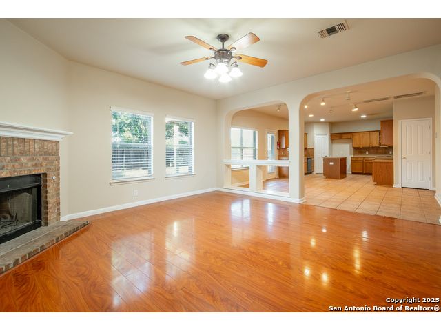You'll love this beautiful 2-story home tucked away on a quiet cul-de-sac in Helotes. Offering 4 spacious bedrooms and 3.5 bathrooms, this home features an open layout with tile and laminate wood floors throughout the main living areas. The island kitchen provides plenty of counter space and storage, opening to a large living room with a cozy fireplace-perfect for gatherings. Upstairs, enjoy a huge game room and generously sized secondary bedrooms. Step outside to relax under the covered patio, while the greenbelt behind the home ensures extra privacy and a peaceful setting.