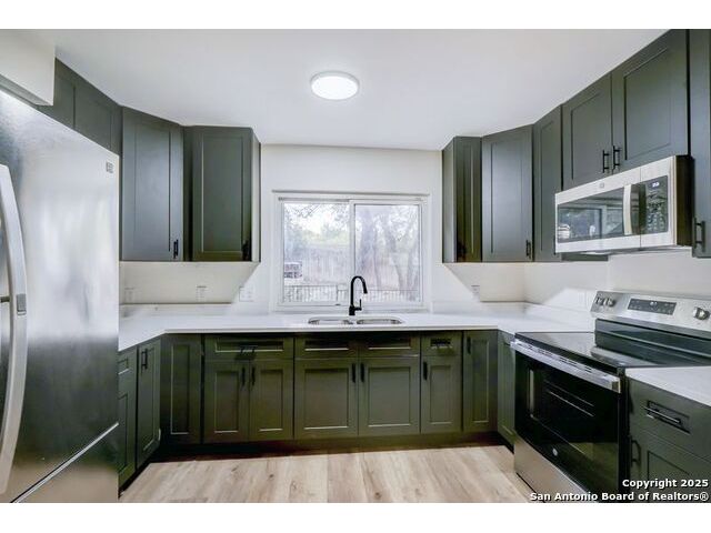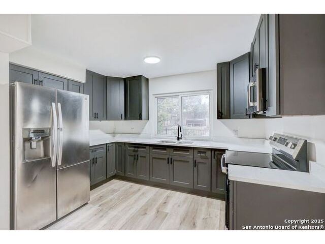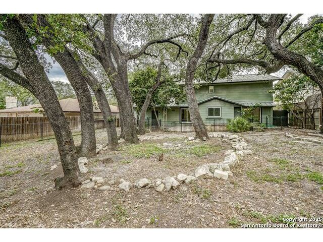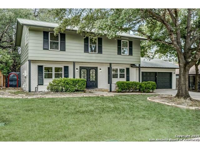 Gorgeous home in a delightful neighborhood with mature trees and hot tub to relax and view the stars and moon for those romantic evenings. Dual closets in Primary room with make up area for the Queen. Location is terrific as its close to 281 North and Bitters! Newer flooring and kitchen/bathrooms. You will not be disappointed with the designer selections in this home. Oversized 2 car garage with extra space on driveway for parking. Beautiful mature Live Oak trees in back/front yard for shade all day. Everlasting metal roof.