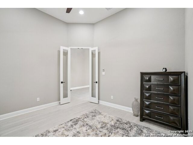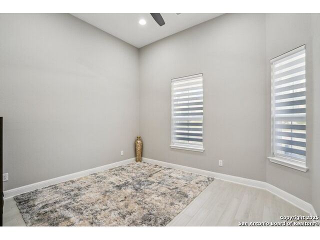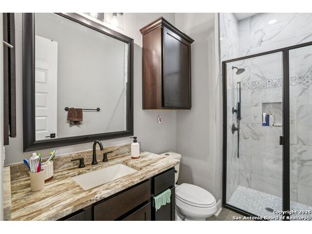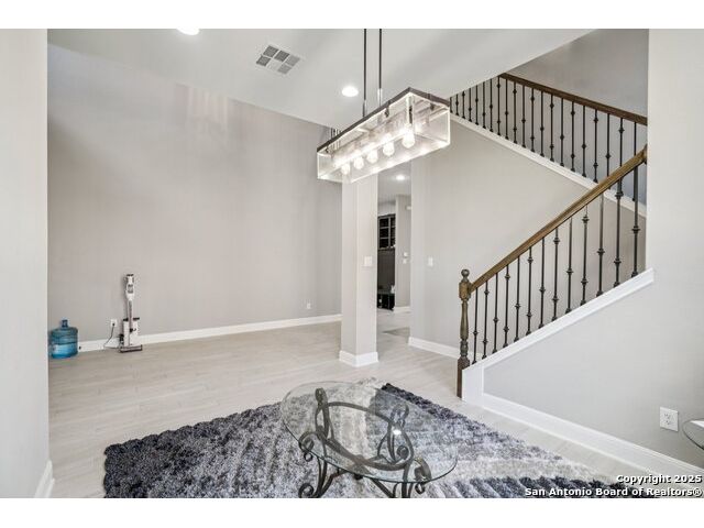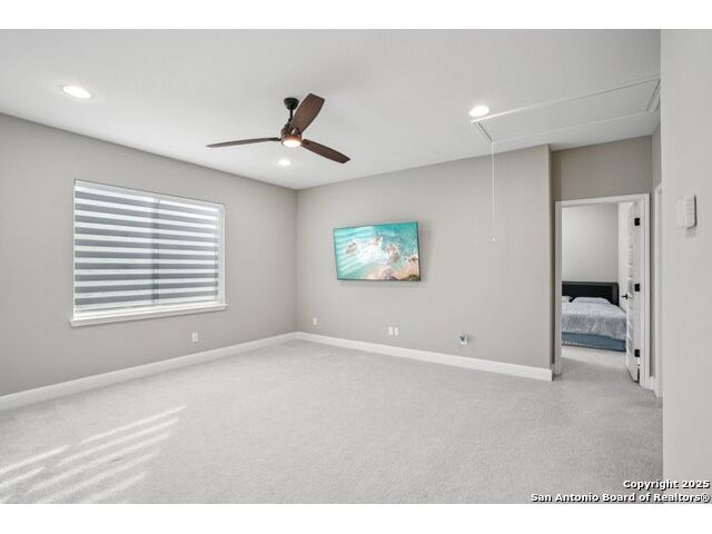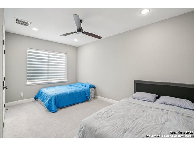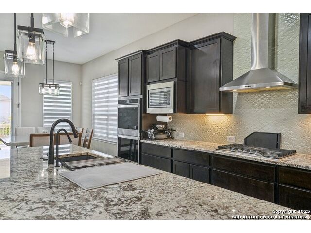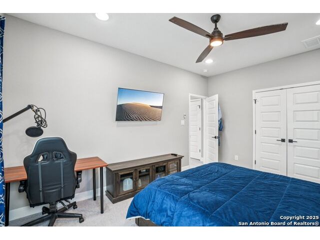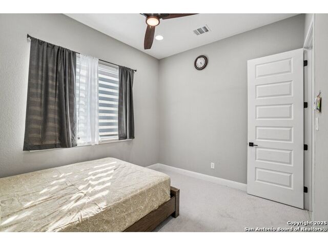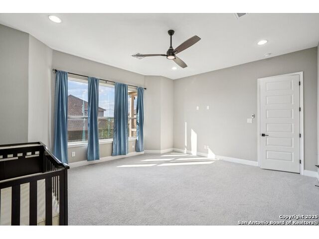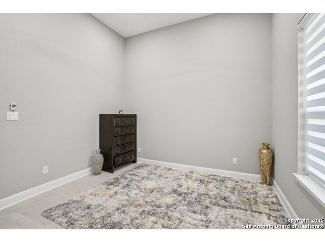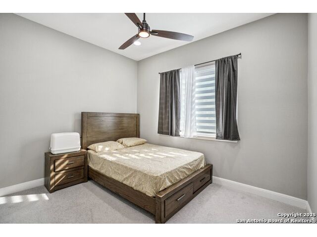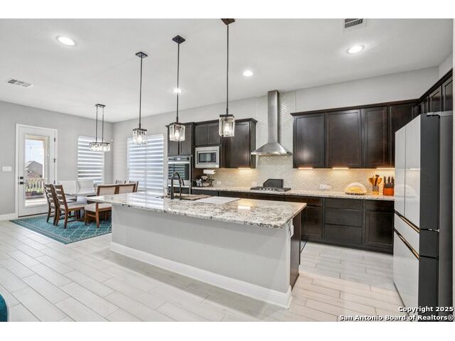 Welcome to this stunning two-story home in the highly sought-after Kinder Ranch community, feeding into top-rated Comal ISD schools. Thoughtfully designed with both comfort and style in mind, this residence offers 4 spacious bedrooms, 3 full bathrooms, a private office, game room, and a dedicated media room with added sound attenuation-perfect for movie nights or entertaining guests. The open-concept floor plan features a chef-inspired kitchen ideal for hosting gatherings, while the oversized back patio extends your living space outdoors and comes pre-plumbed for an outdoor kitchen. A grand 42-inch front entry door sets the tone for the home's modern elegance, while the garage is equipped with custom cabinetry and durable epoxy flooring for ultimate functionality. Blending convenience, upgrades, and timeless design, this home is move-in ready and waiting for its next chapter with you.