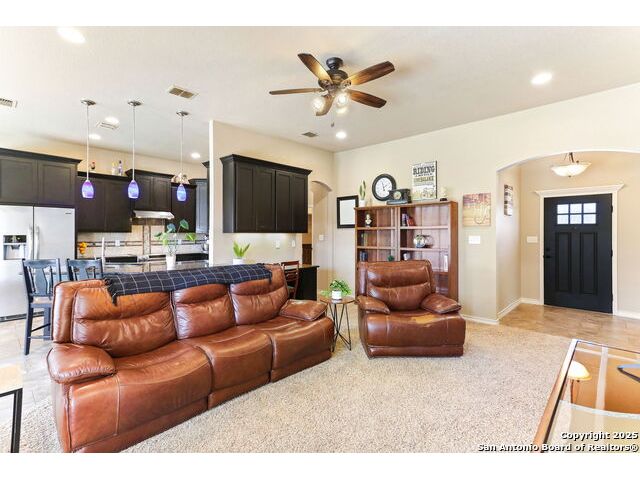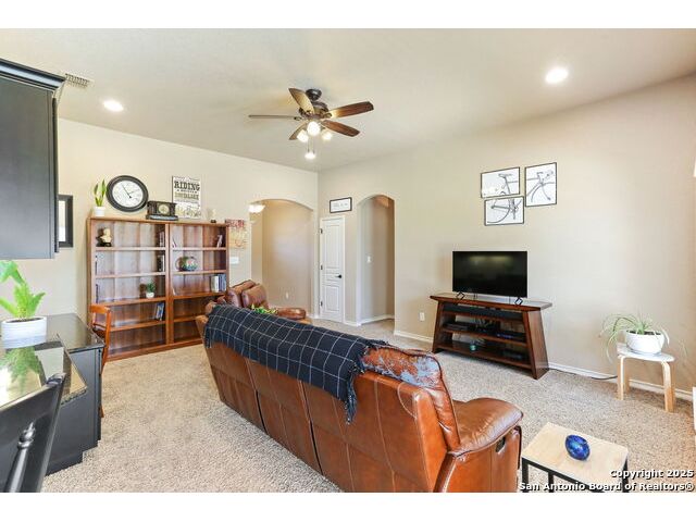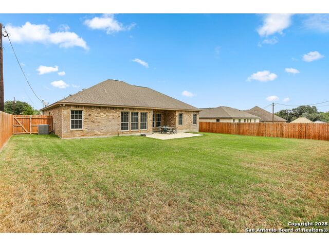 Welcome to 124 Ridgecrest, a beautifully maintained 3-bedroom, 1-office, 2-bath home nestled on a quiet cul-de-sac in the desirable Northcrest Hills subdivision. Built in 2015 and thoughtfully designed as a retirement retreat, this single-story residence combines timeless charm, modern upgrades, and the ease of low-maintenance living. With 1,860 sq. ft. of living space (2,402 sq. ft. under roof), it offers a comfortable and flexible layout perfect for both daily living and entertaining. Step inside and you'll be greeted by high ceilings, abundant windows, and custom cabinetry throughout, creating a light-filled and inviting atmosphere. The living room and primary suite feature new ceiling fans, while plush carpet with extra-thick padding adds warmth and comfort. The primary suite is a private retreat with barn doors, a deep 6' soaking tub, and an oversized spacious vanity, perfect for organization and daily routines. The home also offers a dedicated office space, ideal for remote work or study. A well-designed kitchen includes a new oven hood, garbage disposal, and convenient E-center for organization, paired with durable finishes. This home is as practical as it is beautiful, with recent updates including a new 50-gallon water heater with expansion tank and outside drain (2022), a new water softener (2022), upgraded HVAC with UV light and overflow switch, and a reinforced garage door spring. The full-brick exterior, stand-up attic, and extended cement patio add value, while lush St. Augustine grass enhances curb appeal. Every upgrade was selected for durability, efficiency, and peace of mind.