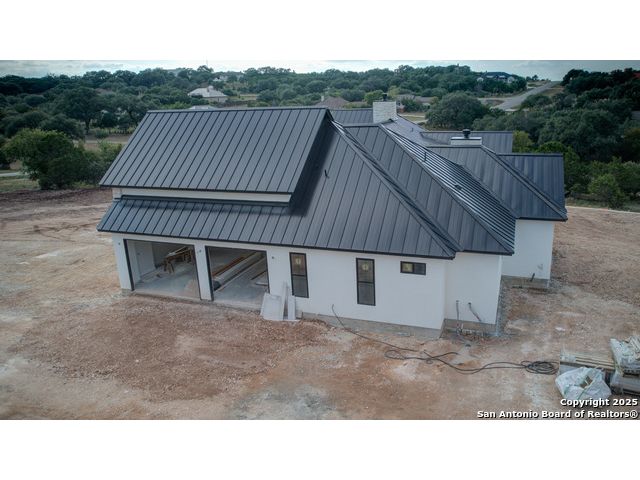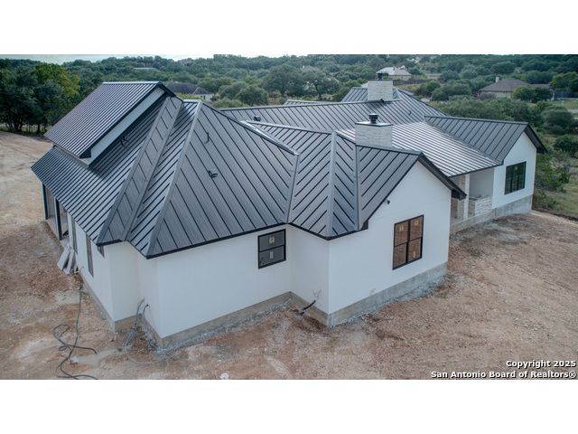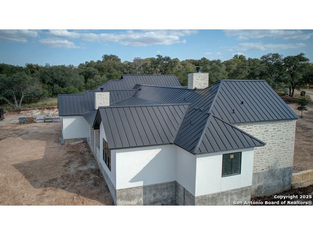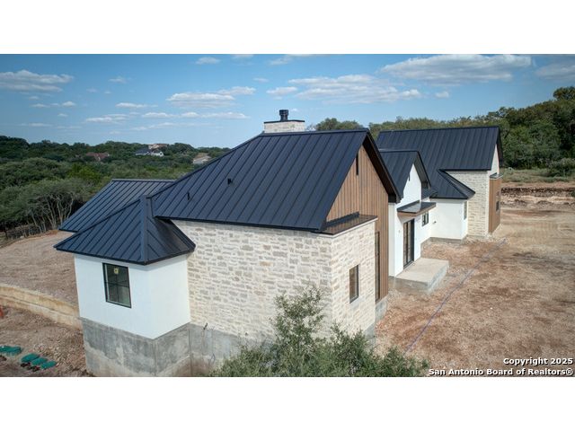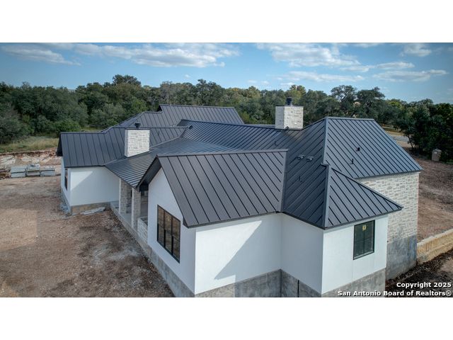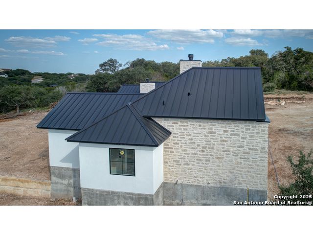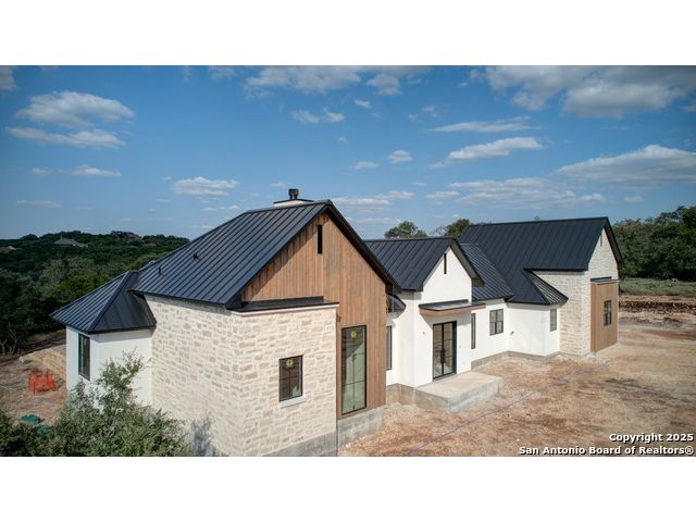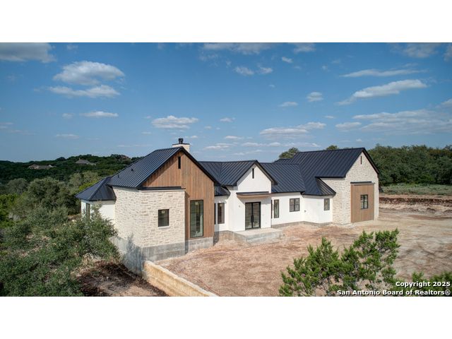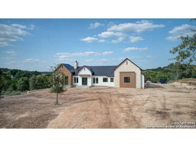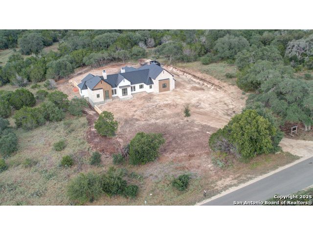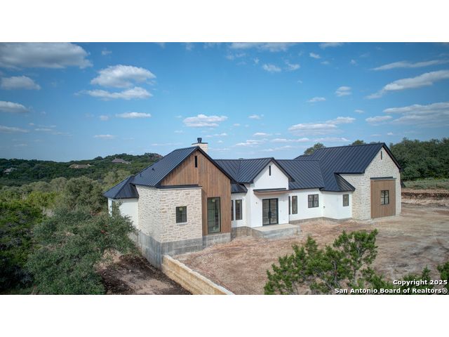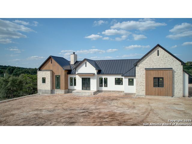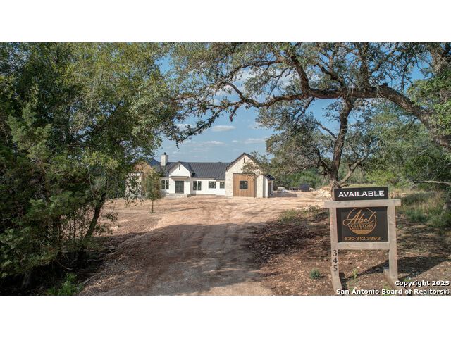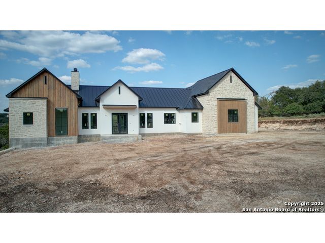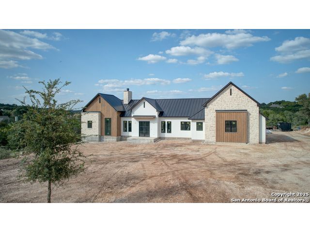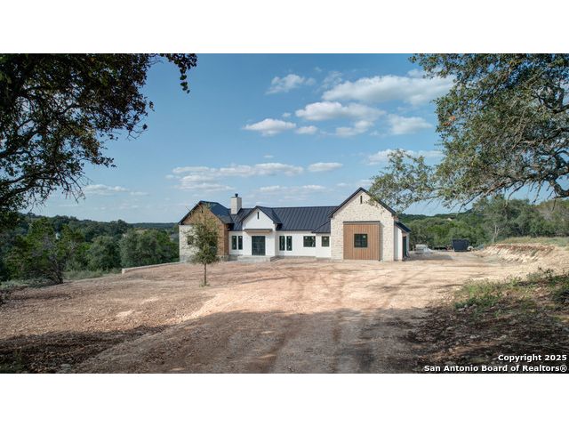 This 3302 square foot luxury one-story home is a modern work of art that is perched on nearly 2 cut and leveled acres with gorgeous oak trees. This Abel Custom home includes 4 bedrooms, + 4.5 bathrooms + an office/study + a living room, + movie room, + gourmet kitchen, + double laundry rooms. The backyard will be nothing short of exceptional with a built-in fire pit and a stone outdoor kitchen. Expect nothing but the highest quality and superb craftsmanship from Abel Custom Build and Design. Some notable features include 100-year-old Reclaimed wood ceilings, white oak cabinets, hand-troweled walls, 2 Stone fireplaces, quartzite countertops throughout, 90% Exterior stone, Smooth Elastomeric Stucco, double laundry rooms, and an oversized 2-car garage with black framed clear glass doors. Be sure to tour the spectacular 58-acre PRIVATE river park where residents can float, kayak, and fish the Guadalupe. This subdivision is located minutes from Historic Gruene and is zoned to the award-winning Hoffmann Lane Elementary. Schedule your private showing today.