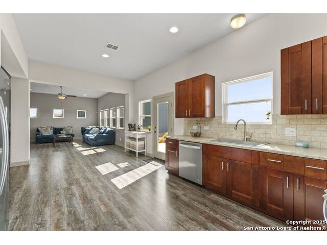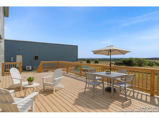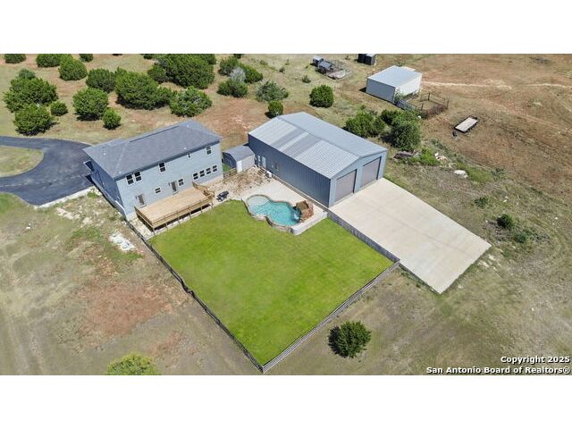 154 Maverick sits on 10 acres where life slows down in the best way. Imagine stepping out onto the oversized deck, feeling the breeze, and watching the Hill Country stretch endlessly in front of you. It's the kind of view that makes you pause - whether it's sunrise coffee or a glass of wine at sunset. The main home was built for connection and comfort, with 3 bedrooms, 2.5 baths, and two separate living areas. There's space for everyone to spread out, yet still come together around the table or in front of the big windows that frame the landscape. Summer days are meant for the pool, with its inviting grotto and plenty of room for laughter and lazy afternoons. When friends or family visit, the guest quarters inside the warehouse give them privacy - complete with a kitchenette and full bath - while still keeping them close. And then there's the 34x25 warehouse itself: part storage, part workshop, part possibility. RVs, boats, weekend projects - it's all welcome here. The loft above makes it more than just storage; it's a space to dream, build, and create. This isn't just property. It's a place where weekends feel like vacations, where everyday routines feel lighter, and where the best memories are made under big Texas skies.