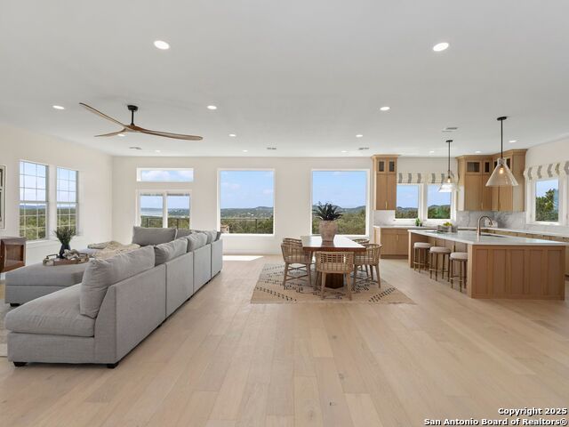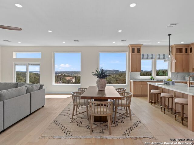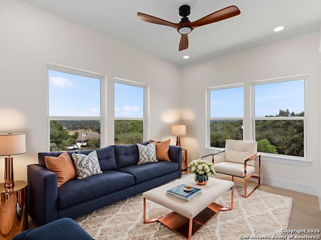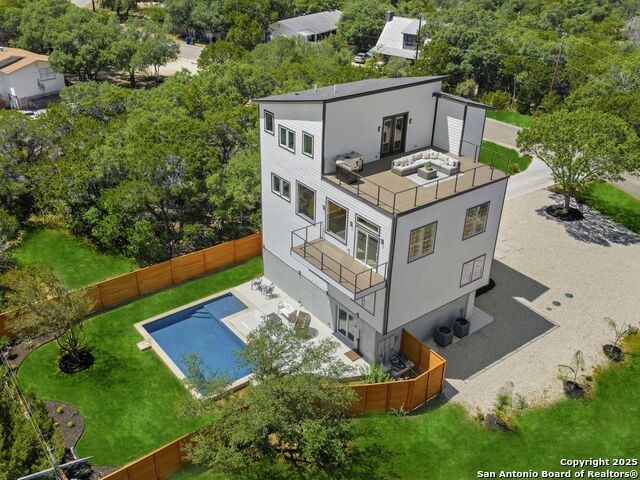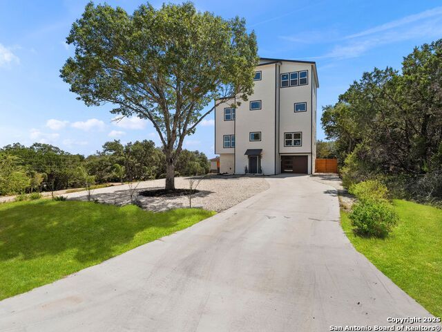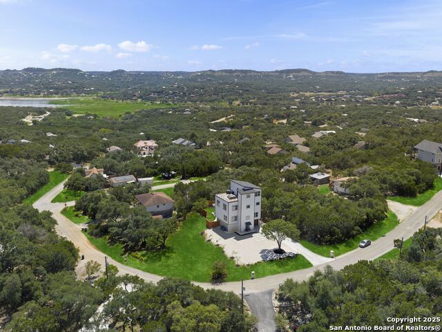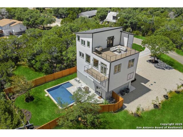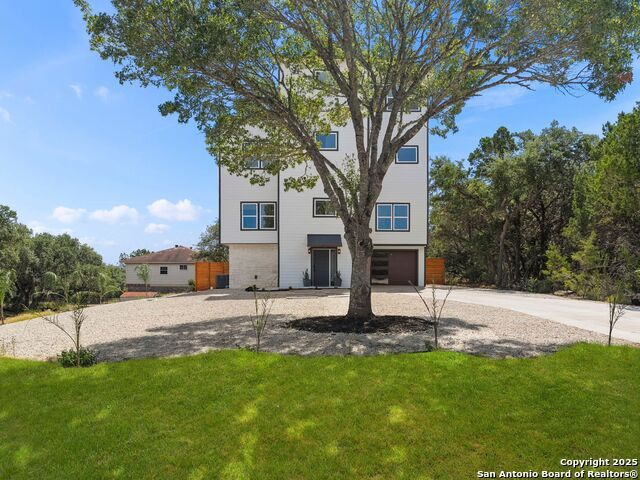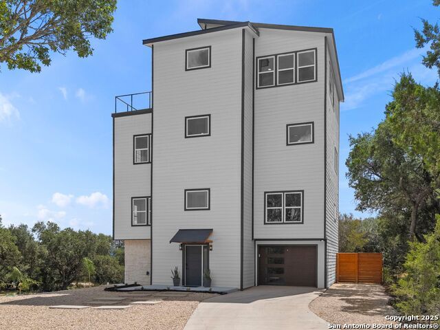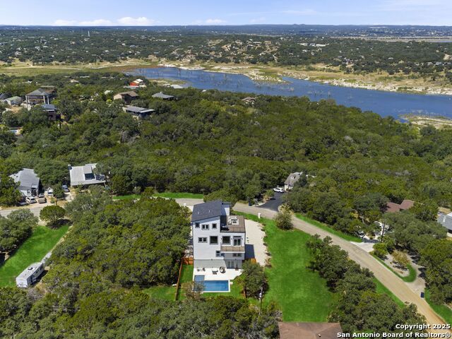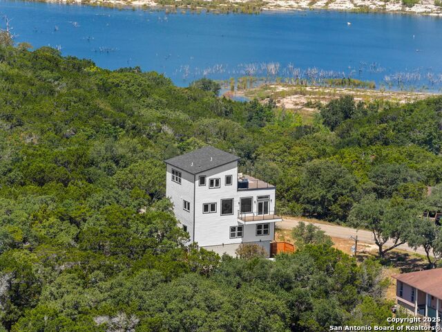 Newly reconstructed and reimagined for lake life luxury, this four level showpiece delivers panoramic Canyon Lake views from multiple upper decks, including a dramatic rooftop terrace, and features a private pool and outdoor kitchen for effortless entertaining. The 4,250 sq ft contemporary layout centers on an open, light-filled main floor with an island kitchen, walk-in pantry, and generous living and dining spaces that spill outdoors. A residential elevator serves every level. The flexible plan provides four bedrooms, three full and two half baths, an upper level primary retreat with spa style bath, plus bonus spaces for media, office, or guests. Recent reconstruction modernized systems and finishes while preserving dramatic lake views and extensive deck space (270 vistas). The property sits on a nearly 0.39 acre corner lot with fenced yard, nearby boat ramp access, marinas, parks and more. Purpose built for lock and eave ease with smart storage and contemporary systems throughout - this home is Hill Country living at its most elevated.