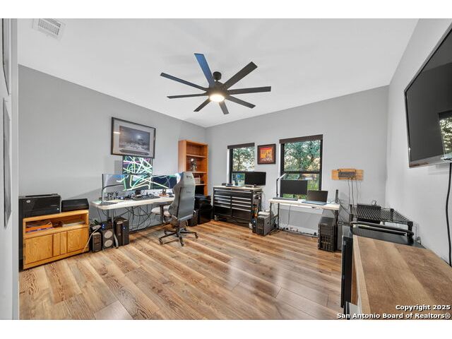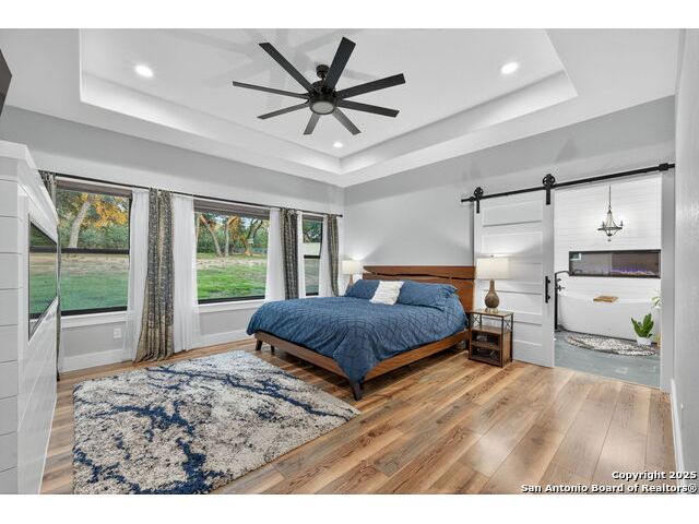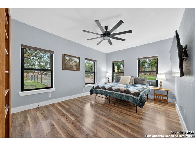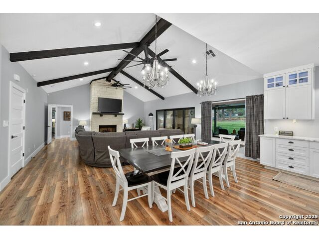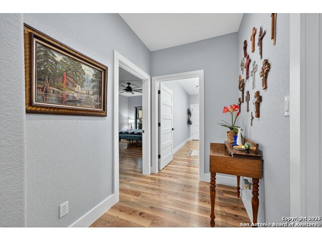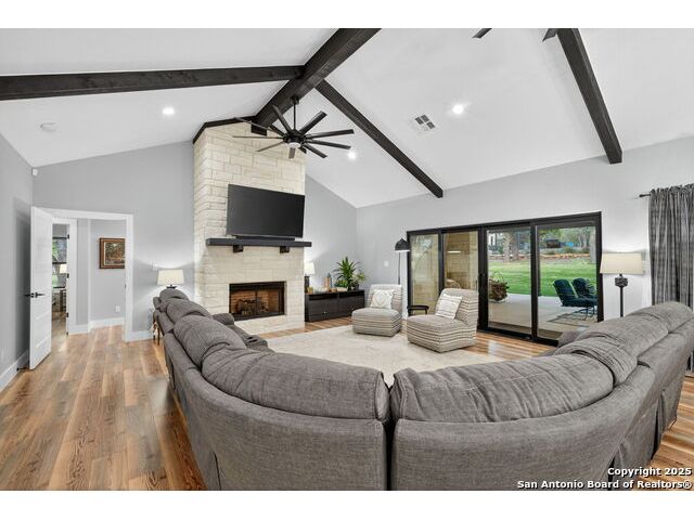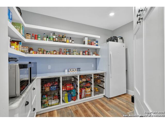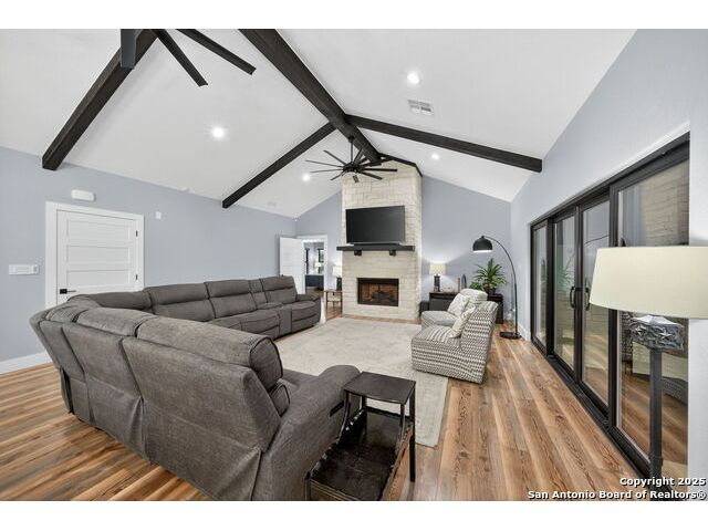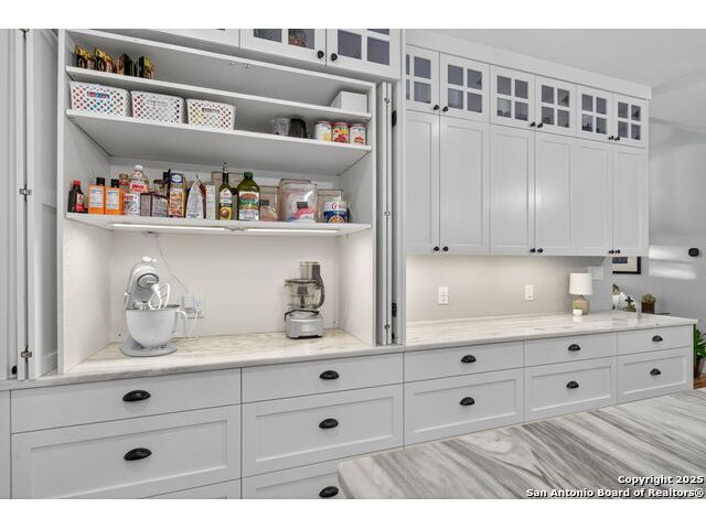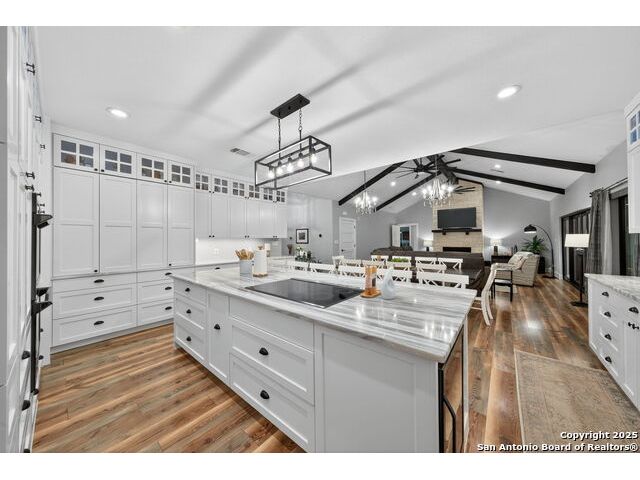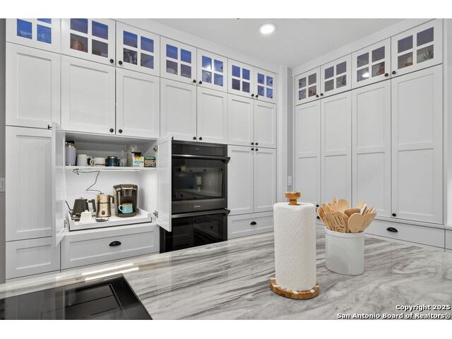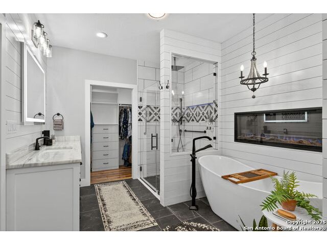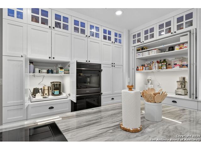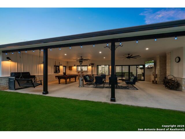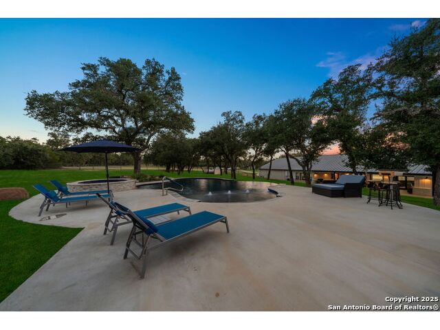 Welcome to 144 Lilly Lane, a masterfully executed custom estate in the exclusive gated community of Trinity Oaks Preserve. Completed in 2021, this residence embodies Hill Country elegance on over three private acres, secured by a 70-foot deed-protected greenbelt. The 3,526 sq ft single-story floor plan was brilliantly designed for modern living, featuring dual primary suites on opposite wings for ultimate privacy, five total bedrooms, a dedicated office with a fireplace, three full baths, and a convenient pool half-bath. Upon entry, the open-concept living area makes a grand statement with soaring vaulted ceilings, a dramatic floor-to-ceiling stone fireplace, and a wall of Pella Low-E windows that dissolve the boundary between indoors and the serene oak-studded landscape. The heart of this home is the chef's kitchen, a showcase of function and style. It features a magnificent ten-foot marble island, a premium induction dowdraft cooktop, and custom cabinetry locally milled to perfection. Behind this polished facade lies the home's secret weapon for entertaining: a truly hidden butler's pantry. This incredible space houses a wet bar, wine fridge, beverage cooler, deep freeze, and a stand-alone ice maker, allowing for effortless hosting while maintaining pristine main kitchen aesthetics. Additional custom details like a concealed coffee bar and a baker's hutch elevate the experience. The main primary suite forms a secluded owner's wing, a true sanctuary of restorative luxury. It features a tray ceiling and a programmable electric fireplace, while oversized windows offer tranquil views. Its spa-inspired bath is a work of art, with a freestanding double slipper tub positioned beneath a chandelier and a third fireplace. The oversized, LED-lit walk-in shower, dual vanities with a dedicated makeup station, a heated towel warmer, and two large custom closets complete this opulent retreat. This home is an engineering marvel, **built to uncompromising standards.** The entire structure is encased in a full spray foam envelope (R30+), ensuring remarkable energy savings. Peace of mind is guaranteed by a whole-house generator capable of running the entire property for extended durations. The infrastructure includes dual HVAC units (one with dual zones), two on-demand tankless propane water heaters, and a 30,000-gallon rainwater collection system. A proactive, custom-engineered drainage system with French drains and sump pumps ensures the grounds remain impeccable. The outdoor spaces are a private resort curated for an idyllic Hill Country lifestyle. A majestic oak tree forms a natural, welcoming archway on the path to the stunning custom in-ground pool, which features a vanishing infinity edge and a heated spa. Entertain on a grand scale across multiple covered patios, including a nearly 50-foot rear patio with a wood-burning stove and a 20x20 pool pavilion with a full outdoor kitchen. The property is secured by high-end, welded drill stem pipe ranch fencing, offering open views for **spectacular sunsets and brilliant, star-filled night skies.** Enjoy serene country living just minutes from Baylor Scott & White hospital, the future Flat Rock Creek retail center, Marble Falls, and Lake LBJ. With Austin's Bee Cave Galleria only 35 minutes away, **this property is not just a home, but a legacy Hill Country retreat.** With too many features to list, ask your Realtor for our property inclusions addendum.