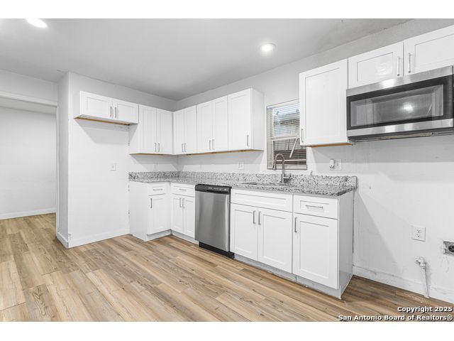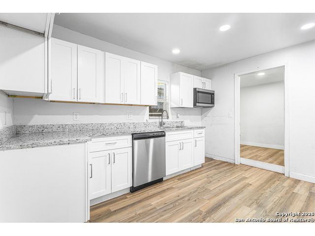 Step into comfort and convenience with this fully updated home featuring a modern kitchen complete with granite countertops, custom cabinetry, and brand-new luxury vinyl plank flooring throughout. Nestled under mature shade trees, the outdoor space offers a cool and relaxing retreat year-round. Located just 0.3 miles from JT Brackenridge Elementary and only 1.2 miles from H-E-B, this home puts everyday essentials within easy reach. Commuters will love the quick access to Hwy 90, Loop 410, I-10, and Hwy 151, with major roadways like Castroville Rd and General McMullen less than 5 minutes away. Whether you're headed downtown, to Lackland AFB, or the Medical Center, you're never far from where you need to be. The layout and upgrades make this an ideal fit for buyers seeking both value and location. This move-in-ready opportunity won't last long in one of San Antonio's most connected areas.