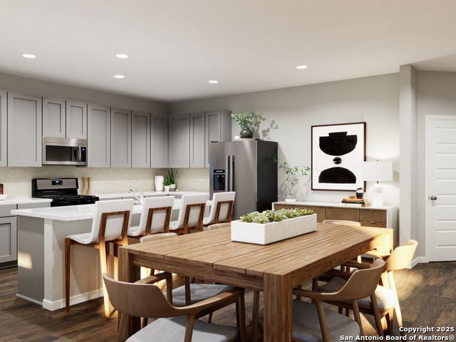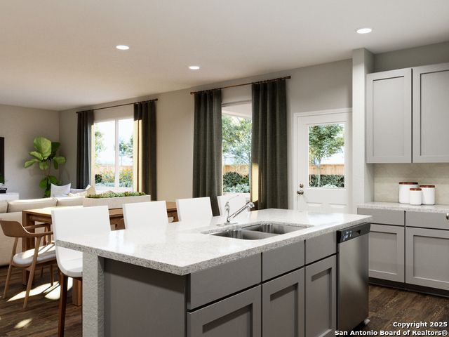 Love where you live in Cinco Lakes in San Antonio, TX! Conveniently located off Loop 1604 and Highway 90, Cinco Lakes makes commuting to Lackland Air Force Base or Downtown San Antonio a breeze! The Sienna floor plan is a spacious two-story home with 4 bedrooms (1 down, 3 up), 3 bathrooms, game room, and a 2-car garage! The home has it all, including a first-floor Guest Suite and vinyl plank flooring. The gourmet kitchen is sure to please with 42' cabinets and granite countertops. Upstairs offers a private retreat for the primary and secondary bedrooms! Retreat to the Owner's Suite featuring granite countertops, an oversized shower, and a spacious walk-in closet. Enjoy the great outdoors with full sod, a sprinkler system, a covered patio, and a cul-de-sac lot! Don't miss your opportunity to call Cinco Lakes home, schedule a visit today!