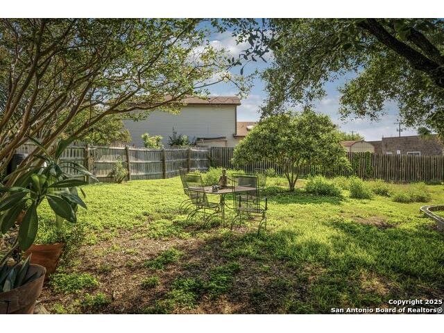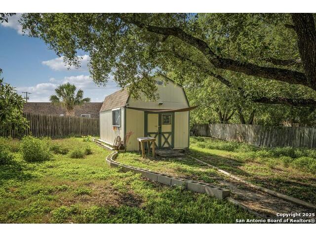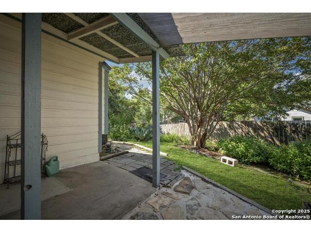 First time on market for sale. Tasteful and charming 1 story home on quarter acre cul-de-sac lot. Gorgeous draught tolerant landscaping and custom interior details throughout. Easy care polished and sealed concrete floors in many areas, split floor plan, eat in kitchen with high ceilings and open light feel. There is a good size shop in the back yard that has power and loft space. Roof replaced in 2021. HVAC system and air ducts replaced 2023 along with 12 inches of added insulation. HVAC system includes free maintenance checks till December 2033. Many neighborhood amenities including pool and sports court. Easy access 0.8 miles within subdivision to McAllister Park Blue Loop which is 6.4 mile loop for hiking, running or biking. Central location with easy access to major highways and airport.