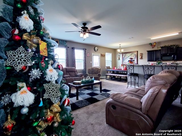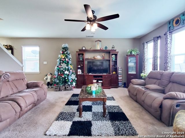 Beautiful 2-story home in Luckey Ranch on a large corner lot near Hwy 90 and Loop 1604 in West San Antonio. This spacious home features 3 bedrooms, 2.5 baths, and nearly 1,900 sq ft of living space. Downstairs offers a bright open-concept kitchen and living room, ideal for entertaining. The oversized master suite includes a tray ceiling, dual walk-in closets, and a private bath with garden tub and separate shower. Upgrades include ceramic tile floors in the kitchen and wet areas, plush carpet in living spaces, and an upstairs laundry room for convenience. All-electric home-no gas. The Luckey Ranch community offers fantastic amenities: a private park, playground, basketball court, and jogging trails. Easy access to Lackland AFB, shopping, dining, and major highways. This move-in ready home is priced to sell-schedule your showing today!