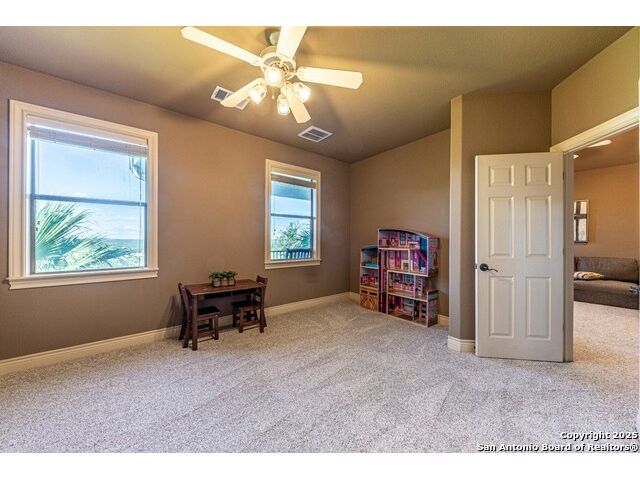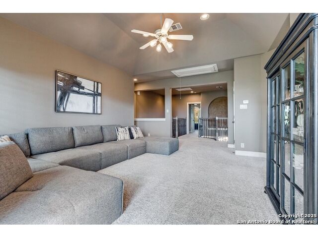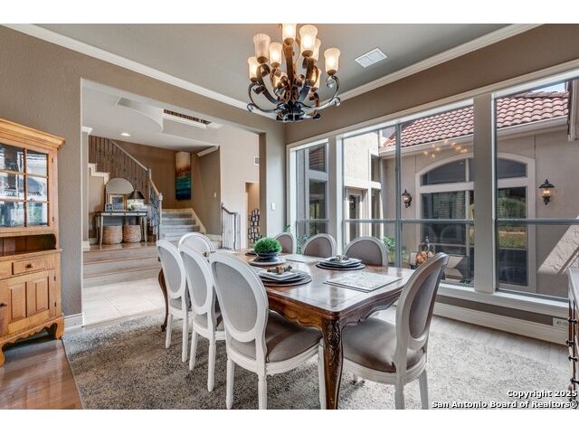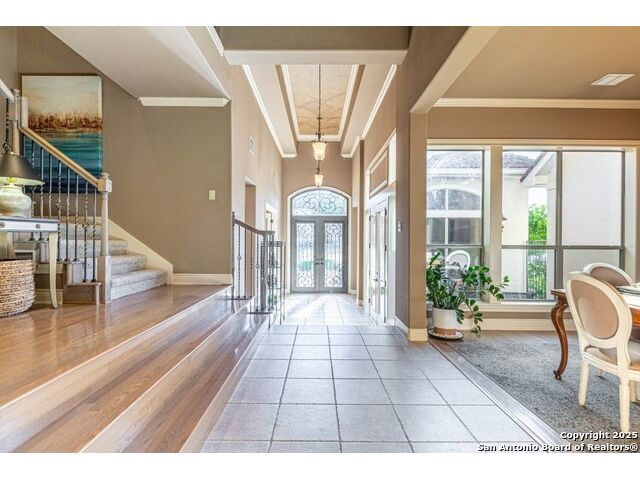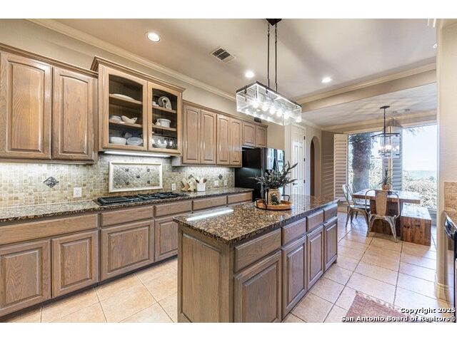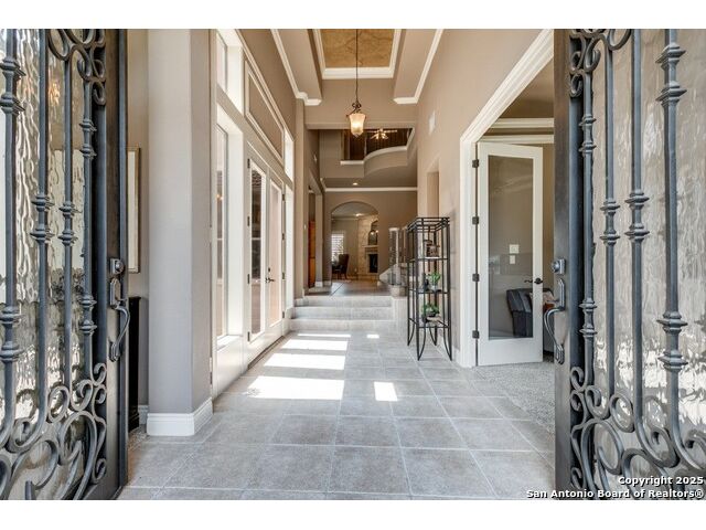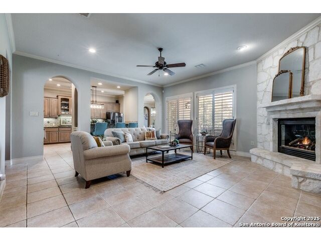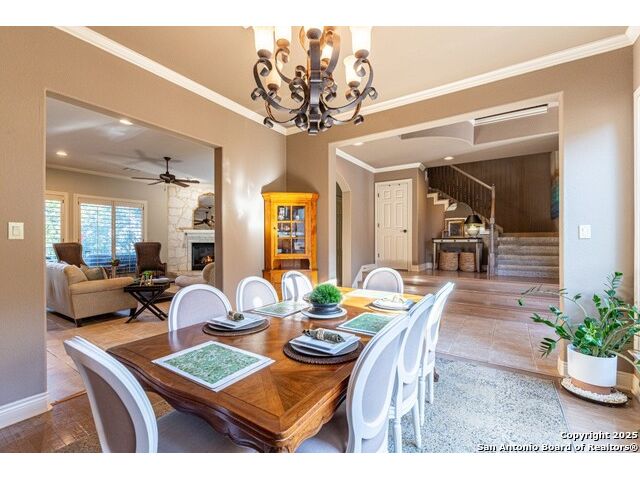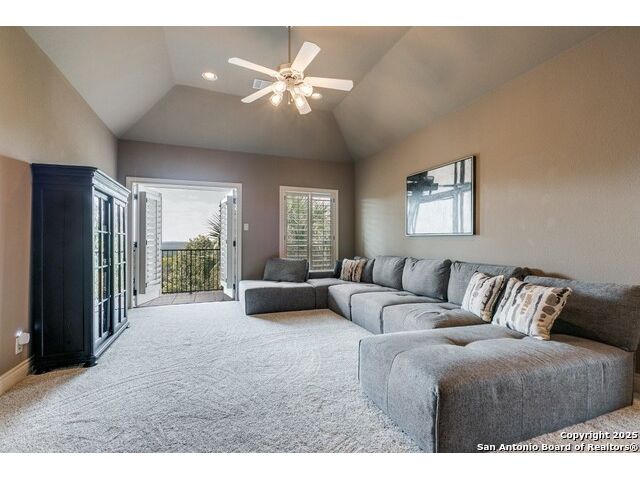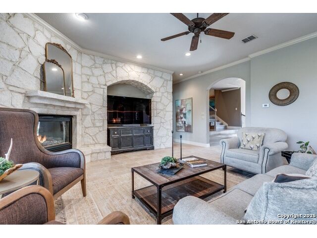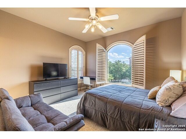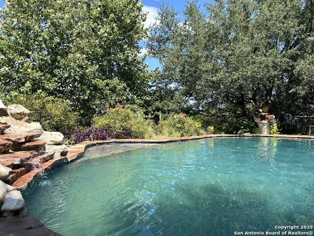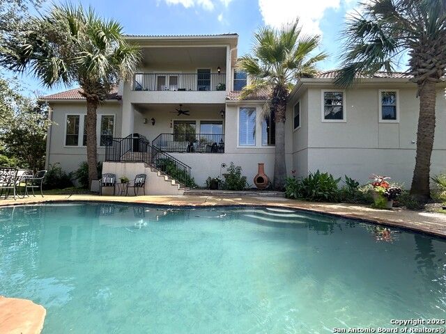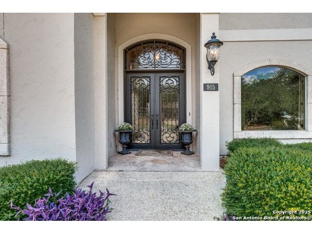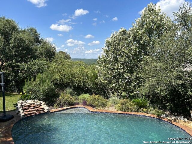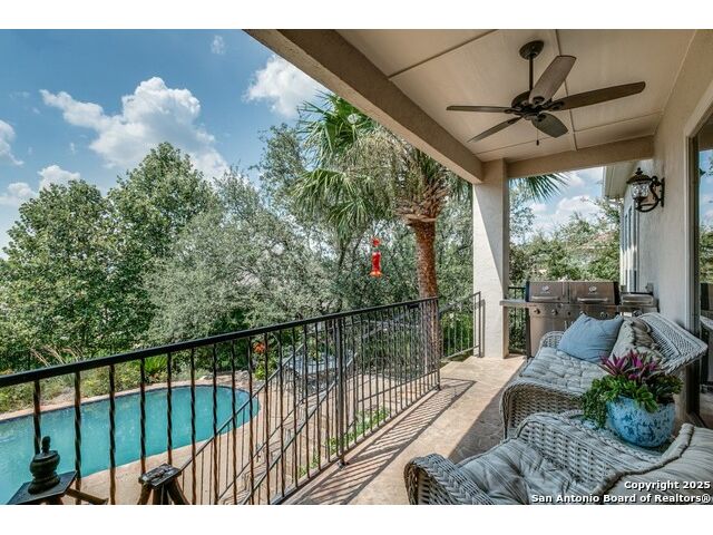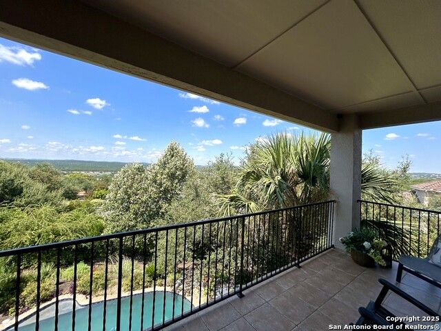 BACK ON MARKET- Don't miss this exceptional second opportunity at 915 Campanile! Imagine...life at the PINNACLE of The Pinnacle! Set at the highest point of this prestigious large-lot, guard-gated community, where luxury reaches new heights. Enjoy sweeping views and sunsets over the scenic Camp Bullis hills from balconies on both levels. You'll even enjoy cooler temperatures - 3-5 degrees lower than the city center - thanks to the home's elevated setting. Step inside to soaring ceilings and a grand entryway. The main level features the primary suite with luxury bath and his and hers closets, a private guest bedroom, two living areas, each with a fireplace - one woodburning and one electric, a dedicated office, and a formal dining room. Upstairs, a versatile game room opens to a stunning tiled balcony, framing breathtaking views of the surrounding landscape. Four additional bedrooms, all with walk-in closets, with two Jack and Jill bathrooms, complete the upper level. Step outside to a true resort-style experience. A sparkling resort-style pool, with waterfall, serves as the centerpiece, surrounded by expansive patios, thoughtfully designed for effortless entertaining. Multiple seating areas create the ideal setting for lively gatherings, all against a backdrop of professionally designed landscaping and panoramic hill country views - as breathtaking as they are serene. Whether hosting elegant gatherings or enjoying quiet evenings at sunset, the outdoor space provides an ambiance of unrivaled luxury and tranquility. PRIME LOCATION - Ideally situated near Blanco Road with easy access to Loop 1604, and just over a mile from premier shopping and dining destinations. Featuring fresh paint and carpet throughout, exterior paint, and new primary AC unit and pool pump in 2024. Schedule your private tour today!