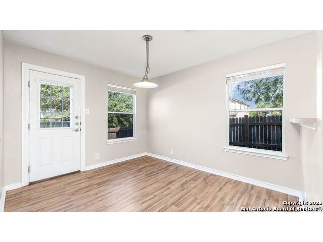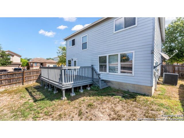 Welcome to this beautifully maintained two-story home in the Hallie Heights community, offering comfort, convenience, and style. Built in 2006, this 1,803-square-foot residence features four spacious bedrooms and two and a half baths, with a thoughtful layout perfect for family living. The inviting living room flows into a well-equipped kitchen with a walk-in pantry and modern appliances, while the upstairs master suite includes a walk-in closet and private bath. Additional bedrooms provide plenty of flexibility for guests, a home office, or kids' rooms. Recent updates include new flooring downstairs, freshly cleaned carpets upstairs, and crisp interior paint throughout, making the home move-in ready. Sitting on a corner lot with mature trees, the property offers privacy and charm, complete with a fenced yard, covered deck for outdoor gatherings, and a two-car garage for convenience and storage. Located near Lackland Air Force Base with easy access to Loop 410, this home is close to shopping, dining, and schools within the Southwest ISD, including Sun Valley Elementary, Scobee Middle, and Southwest High. With thoughtful updates and a prime location, this home is ready to welcome its next owners.