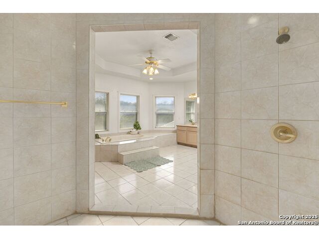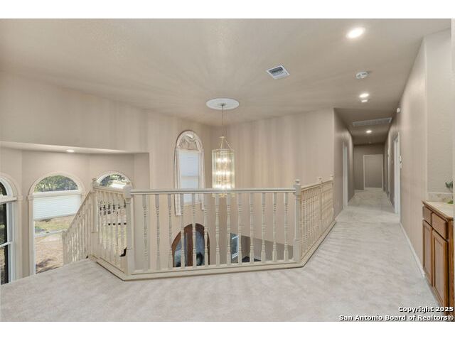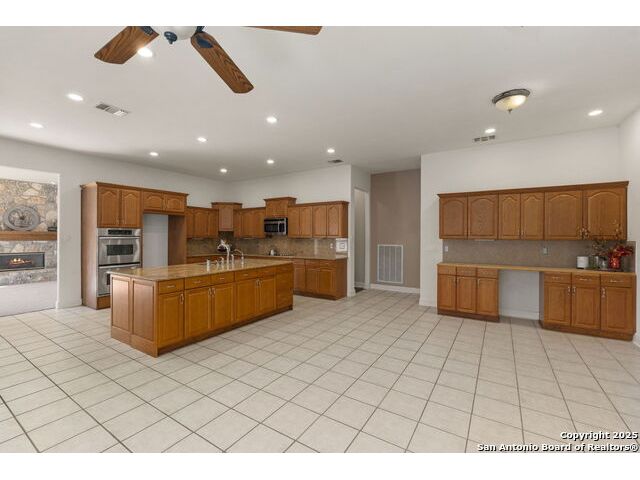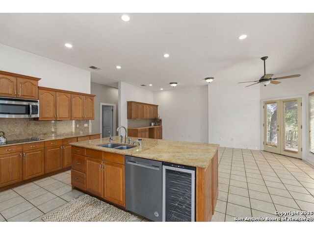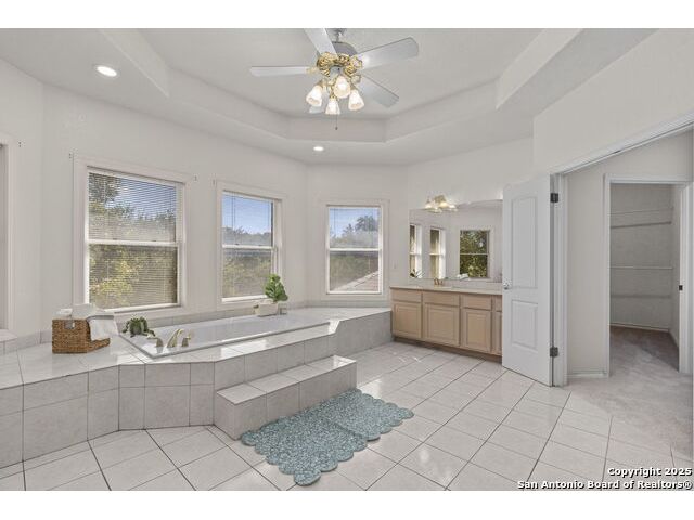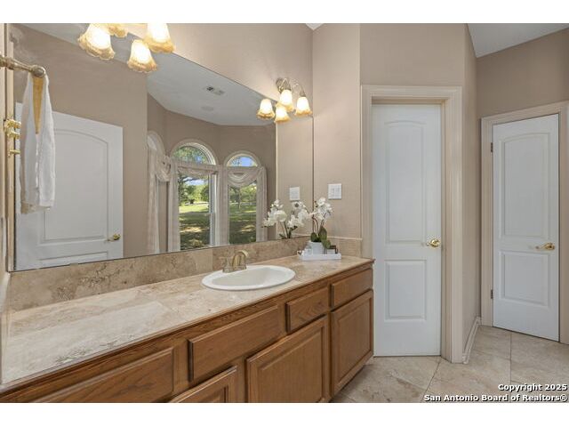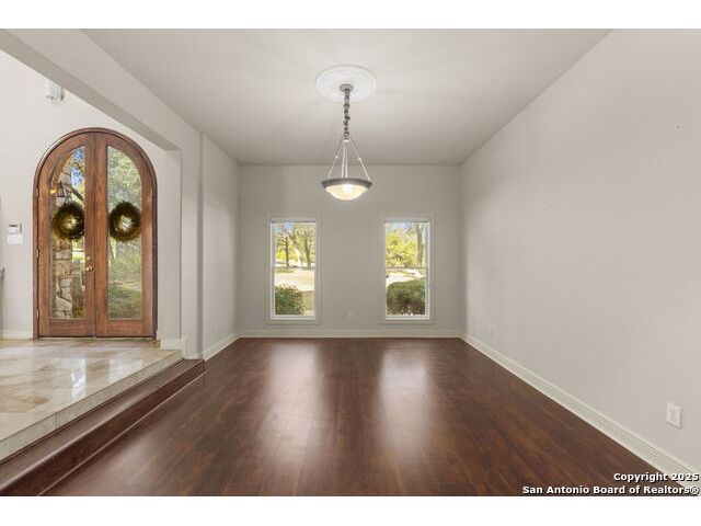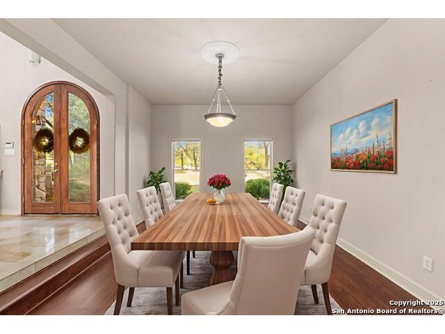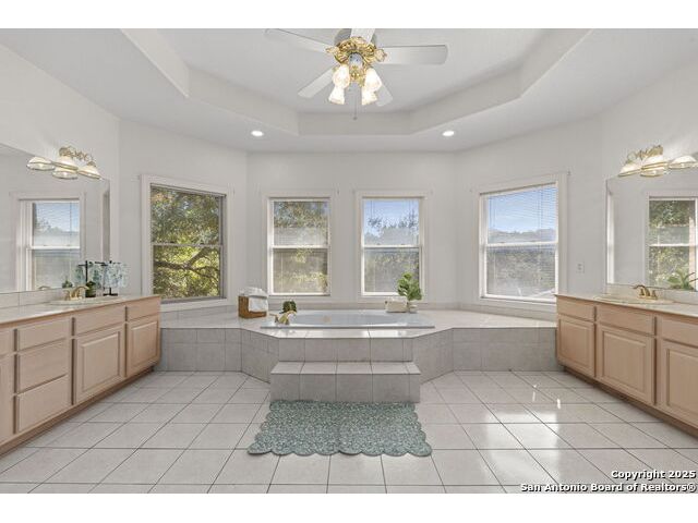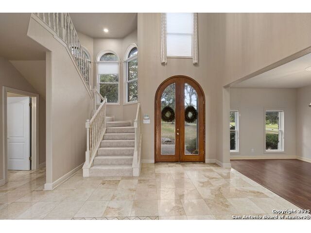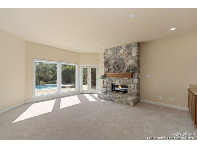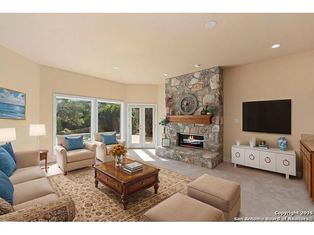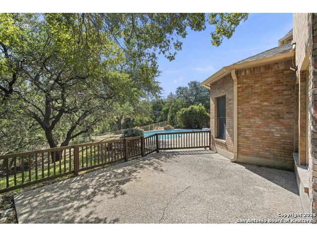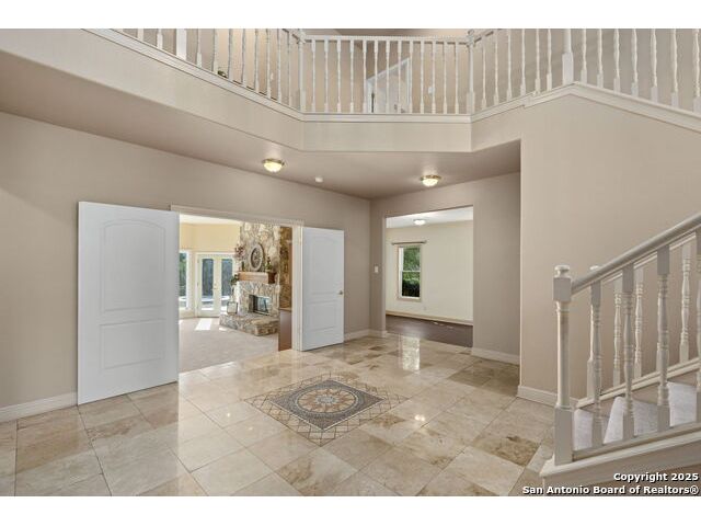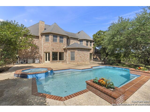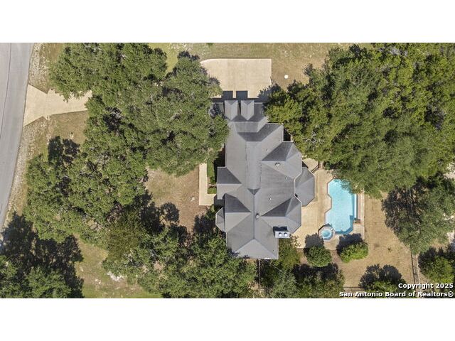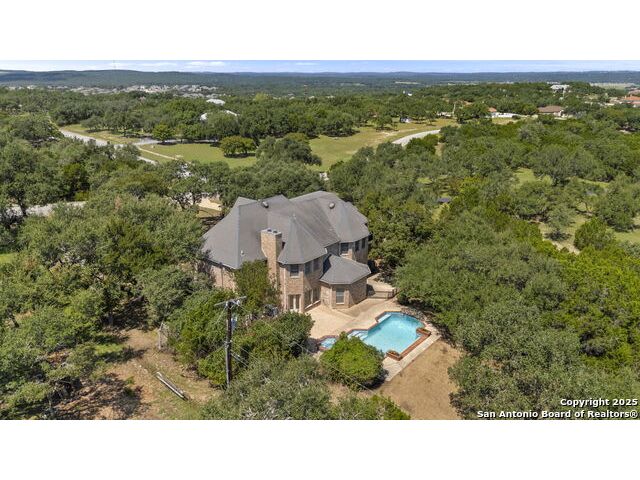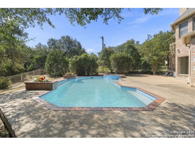 Here's your chance to own a spacious 4600sqft home with 4 bedrooms, 4.5 bathrooms, an in ground pool and spa that sits on 2.34 acres inside a gated community. Priced well below appraised value! Home is set back from the street with a long driveway and welcoming walkway that guides you the front entrance. The double-door entry sets the tone opening to a spacious foyer with soaring ceilings and view of the pool and backyard. Dining room with a picturesque view of the front yard trees. Flex room can be used as an office or second living space or can easily be converted into a 5th room. Bright and inviting, the living room offers natural light, a cozy brick fire place, and a wet bar. Designed for both function and fun, the large kitchen with double ovens provides extensive cabinets and granite counters to accomadate all your entertaining needs. Breakfast Area off the kitchen is perfect for everyday dining or plenty of space to add additional seating. Walk in Pantry offers plenty of storage and shelves. An additional large flex room with double doors to the side of the kitchen looks into the pool and back yard. Upstairs, the staircase opens to the hallway leading you to all the bedrooms. Primary Suite has it's own private entry nook, ideal for art or statement mirror, and a spacious bedroom with vaulted ceilings, windows, and a private brick fire place. Adjoining primary bathroom is practical and roomy, with 2 seperate vanities a bathtub with wrap around windows, an oversized walk in shower and walk in closet. Secondary large bedrooms are split from the primary and each have their own full bathrooms. Laundry room has great storage space with cabinets, counterspace and a sink. An additional staircase leads you back downstairs near the kitchen.Home offers an Oversized 3 car side entry garage. Step outside into your backyard and enjoy the perfect blend of leisure and nature with views overlooking the pool and mature trees. Afternoon shade and plenty of room for patio furniture. Home sits on a little over 2 acres and full of natural landscape with mature trees, some cactus and plenty of wildlife in the community. Home is priced to sell and offers huge potential with a little TLC and updating. Great location, Comal ISD schools AND you don't have a water bill!