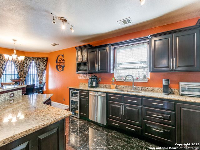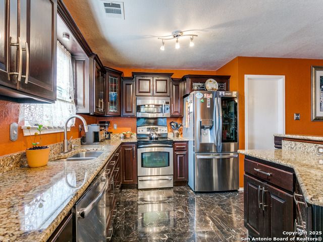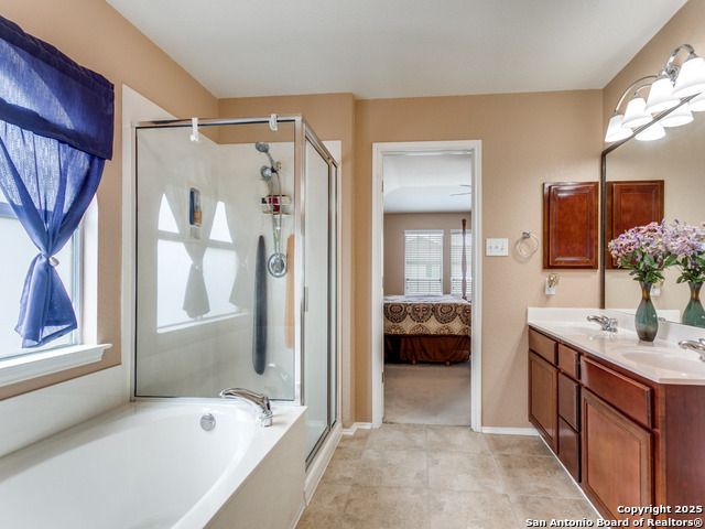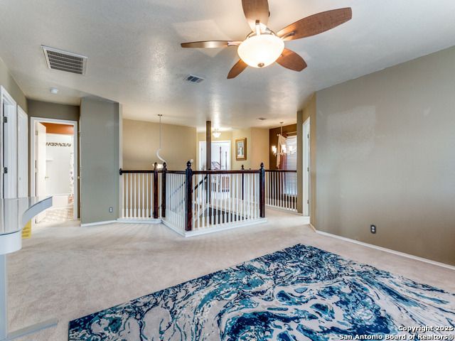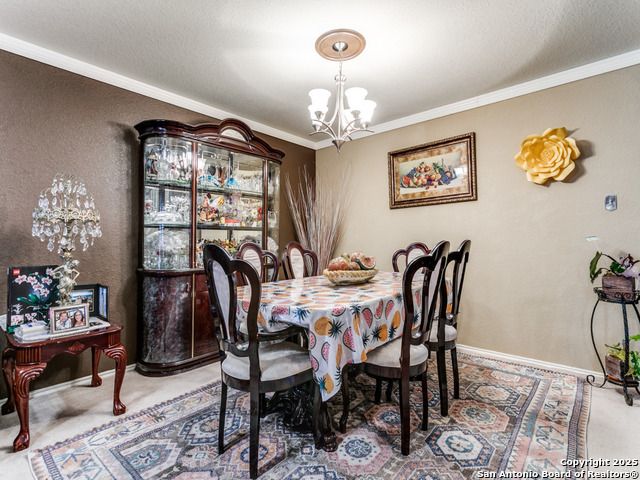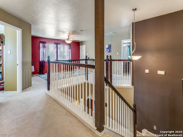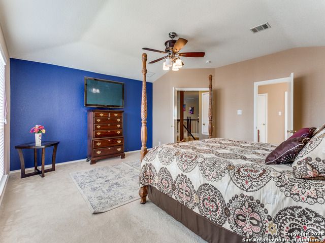 Don't miss out on this beautiful 4 Bedroom, 2.5 Bathroom home on corner lot with open floor plan designed for both entertaining and everyday living. The kitchen is a chef's dream-featuring mahogany-stained cherry cabinets with glass doors, granite countertops, stainless steel appliances, and wine chiller. The home also boasts two spacious living areas, two dining spaces, and a cozy fireplace. The downstairs spacious bonus room can be used as a study/office/gym or bedroom. Upstairs, the oversized primary suite offers a true retreat with a spa-style bath including garden tub, separate shower, dual vanities, and an enormous walk-in closet. Three additional large bedrooms, an upgraded bathroom with skylight, and a game room provide plenty of space for family and guests. Location is unbeatable-just off Potranco Road with quick access to Loop 1604, Lackland & Kelly AFBs, SeaWorld, shopping, dining, and everyday conveniences right across the street.