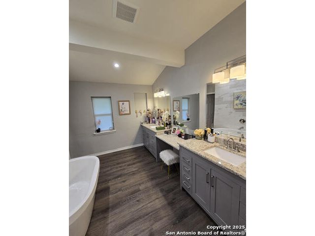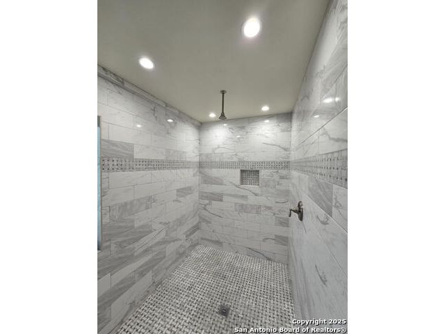 MID-CENTURY MODERN MASTERPIECE ON NEARLY AN ACRE JUST STEPS FROM ALAMO HEIGHTS, 410, DOWNTOWN! ASSUME A 2.25 pct VA NOTE!!! Open floor plan with soaring vaulted 13-foot ceilings -- a space flooded with natural light! This is a kitchen to relish whether cooking or hanging out -- with gas cooktop/oven, loads of granite counter and cabinet space, glass front cabinets, a skylight above the island and window over the sink, overlooking the backyard with its canopy of mature oaks! Split level style gives this home a ton of character. Coffee/wine bar off the dining area; Two bedrooms with en suite baths, the split master suite with resort style bathroom and unsurpassed shower space as well as soaker tub fit for the movies. Almost an acre to roam with a detach garage and storage space. The private yard with deck shaded by charming, mature trimmed oaks; minutes from Fort Sam, SAMMC, downtown and most of the conveniences of central San Antonio.