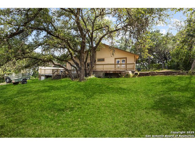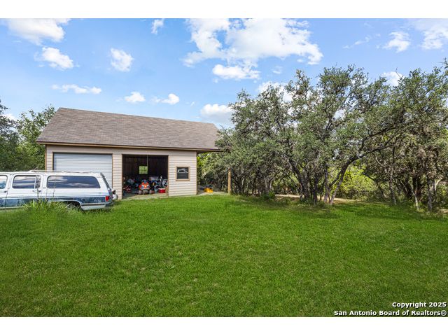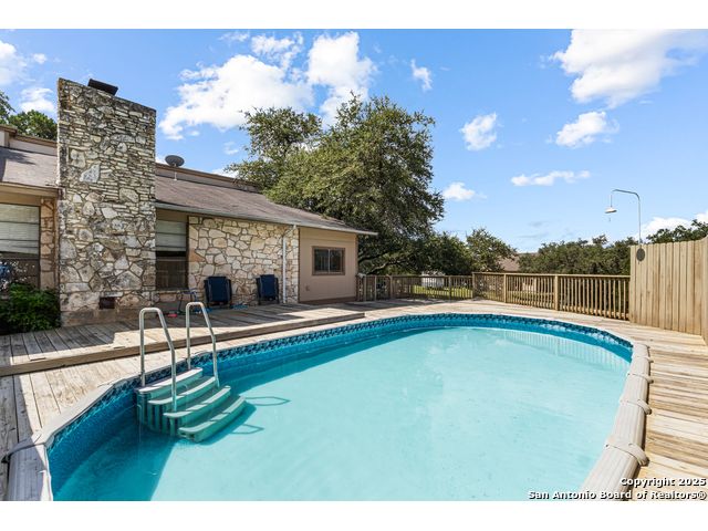 **Over an acre in San Antonio with no mandatory HOA-a rare find.** This home includes an additional bedroom, making it a 4-bed, 2-bath residence set on a 1.05-acre homesite (~45,738 sq ft). A central atrium/courtyard brings in natural light and adds architectural character. The private primary suite is split from the secondary bedrooms, while two additional flex spaces offer options for a home office, playroom, or gym. Outside, enjoy an above-ground pool with a wooden deck, a spacious backyard with room for pets, projects, or parking, plus a detached garage/shop perfect for vehicles, storage, or hands-on projects. Conveniently located just off the highway-behind Nardis Gun Club and 7 minutes from SeaWorld-this property blends elbow room with quick city access. Voluntary HOA adds flexibility. All personal property will be removed prior to closing. If you've been looking for space without heavy restrictions, this is it. Schedule your showing today!