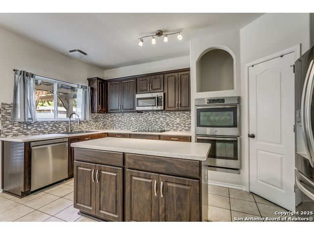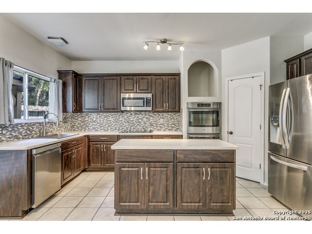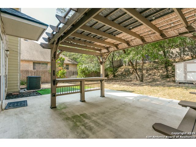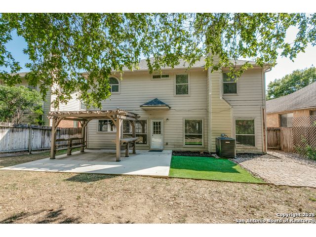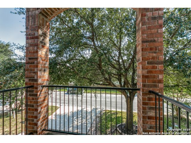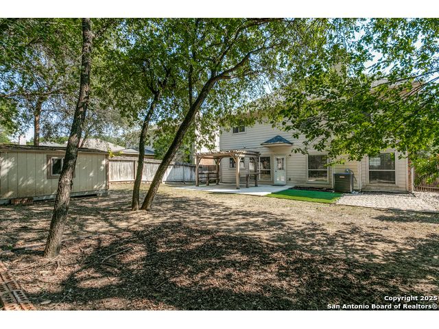 ***$7,500 offered in Concessions***This stunning two-story home, located in the highly sought-after gated community of Churchill Estates, is move-in ready with updated AC system. The property offers excellent curb appeal with a three-sided brick exterior, mature trees, and a welcoming front balcony. Inside, natural light pours through large windows, highlighting the open-concept floor plan that flows seamlessly into the spacious modern kitchen. The kitchen is equipped with granite countertops, a stylish tile backsplash, rich cabinetry, stainless steel appliances, and a spacious center island-perfect for cooking and entertaining. Refrigerator, washer and dryer included! Upstairs, the expansive primary suite features a luxurious bath with a walk-in shower, garden tub, dual vanity, and an oversized walk-in closet. Additional highlights include generous secondary bedrooms, an upstairs laundry room, and a versatile bonus room with its own balcony-ideal for a home office, game room, or loft. Step outside to the spacious backyard, complete with mature trees and a charming pergola-an inviting space for outdoor gatherings or quiet relaxation. Outdoor shed great for extra storage. Conveniently located just minutes from the San Antonio International Airport, as well as an array of dining, shopping, and entertainment options.